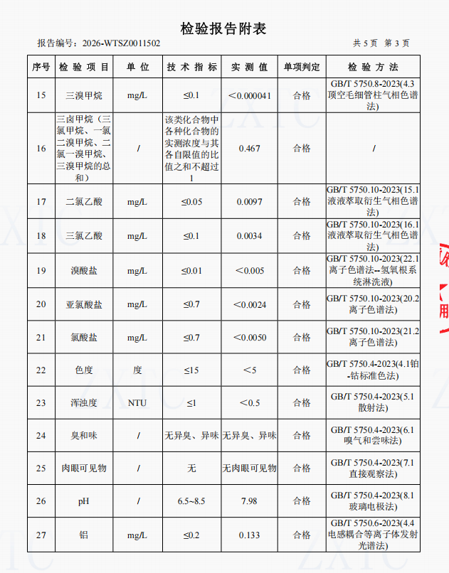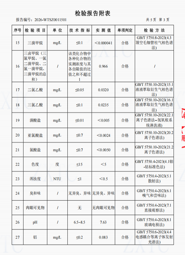 2、肖家湾水厂管网水(三峡梯城景区公厕)常规指标