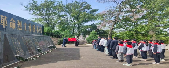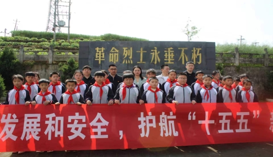 “红线牵引·重走红色护安路”是第一站。从农坝小学出发,途经烈士陵园、第一党支部旧址。在烈士陵园,孩子们肃立献花,聆听革命先辈当年在这片土地上的故事。没有说教,只有讲述;不喊口号,只有静默的致敬。随后,大家面向国旗高唱国歌,鲜艳的横幅定格下这一刻的庄重与热血。