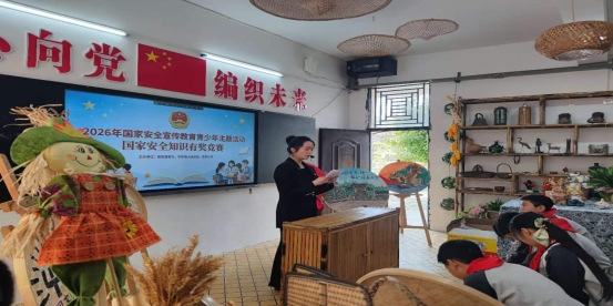 走进农坝小学竹编工艺坊,开展“编织防线·非遗匠心护国安”主题活动。这里,竹篾不再是普通的手工材料。一幅幅主题竹编作品,巧妙融入了国家安全、保密教育元素——非遗技艺与国安理念,在这里“编”在了一起。随后进行的“竹篓藏安·有奖竞答”趣味赛将活动推向高潮。特色竹篓内藏有涵盖多领域保护国家安全知识的问答卡,孩子们争相抽题、抢答,笑声与掌声此起彼伏。“原来国家安全离我们这么近!”一名五年级学生说。