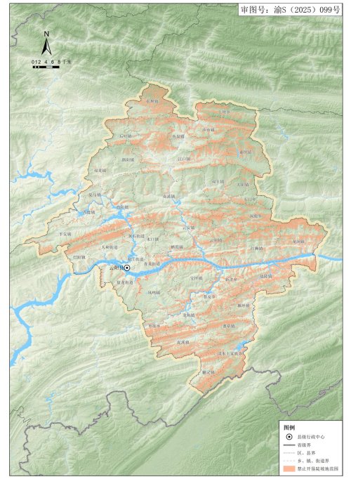 云阳县禁止开垦陡坡地范围分布图