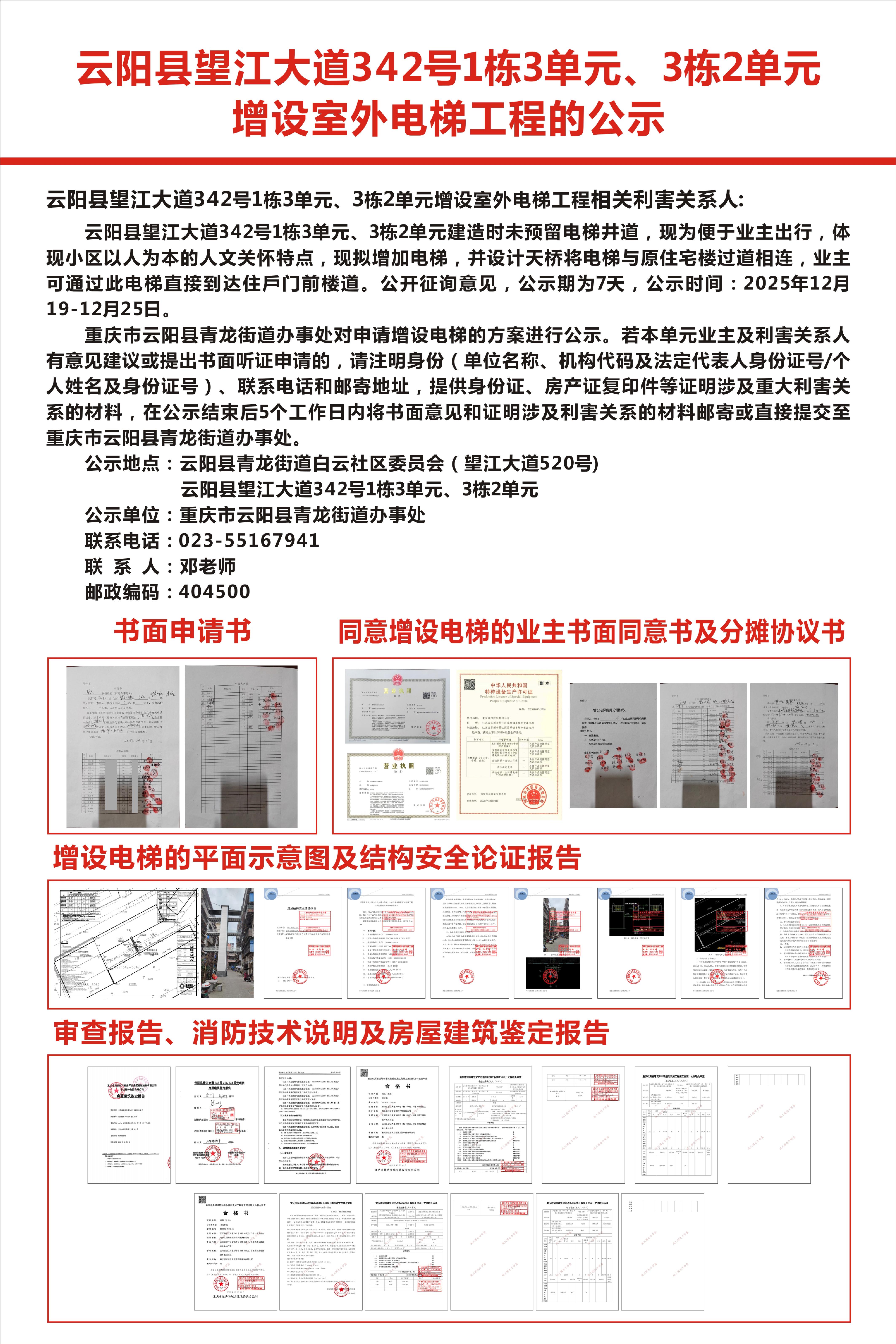 云阳县望江大道342号1栋3单元、3栋2单元增设室外电梯工程的公示