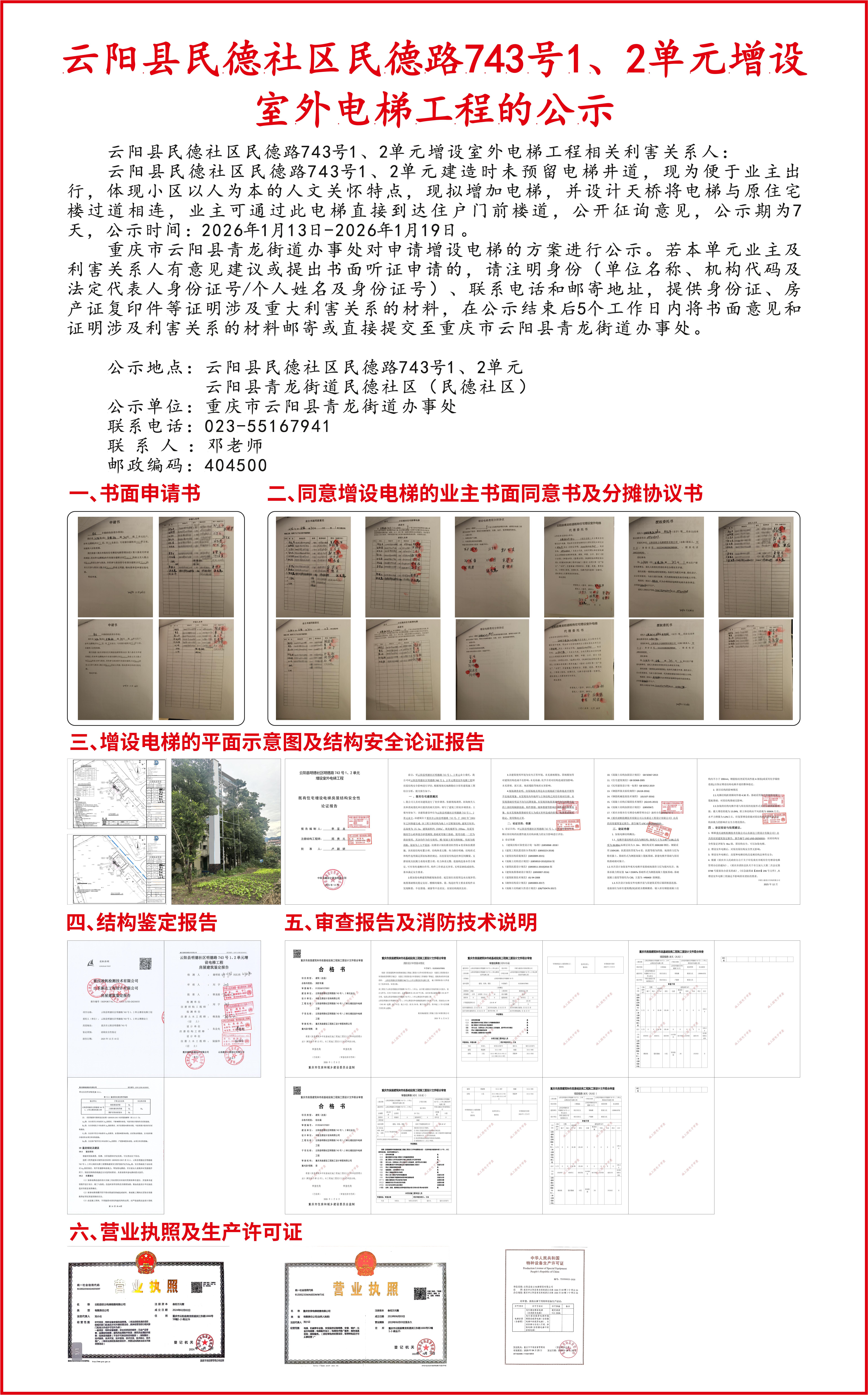 云阳县民德社区民德路743号1、2单元增设室外电梯工程的公示