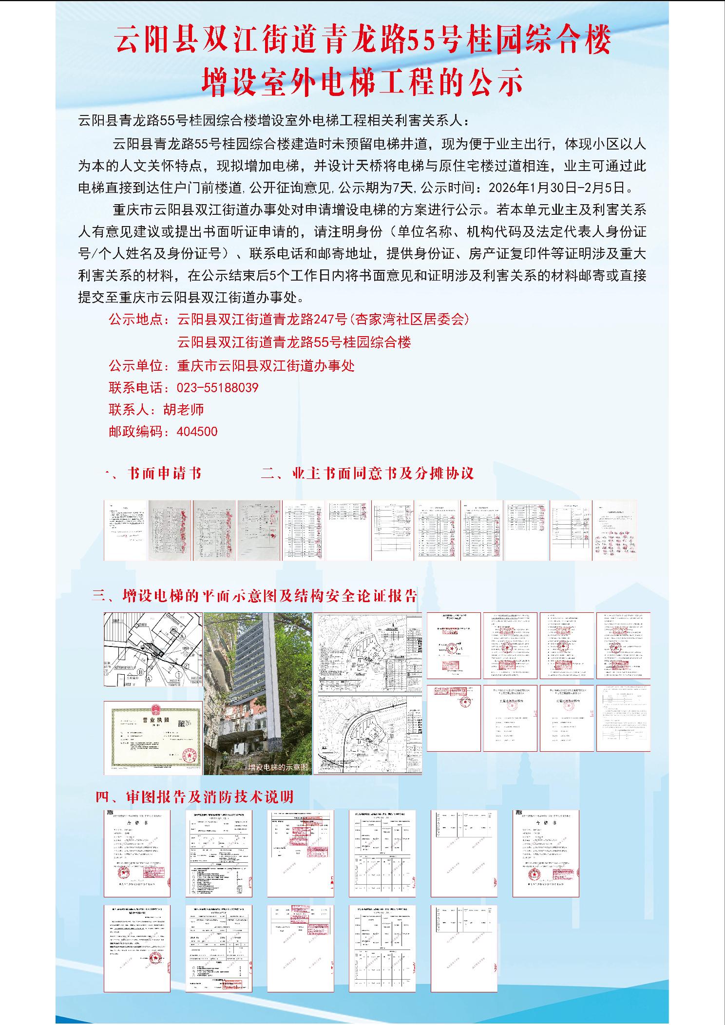 云阳县双江街道青龙路55号桂园综合楼增设室外电梯工程的公示