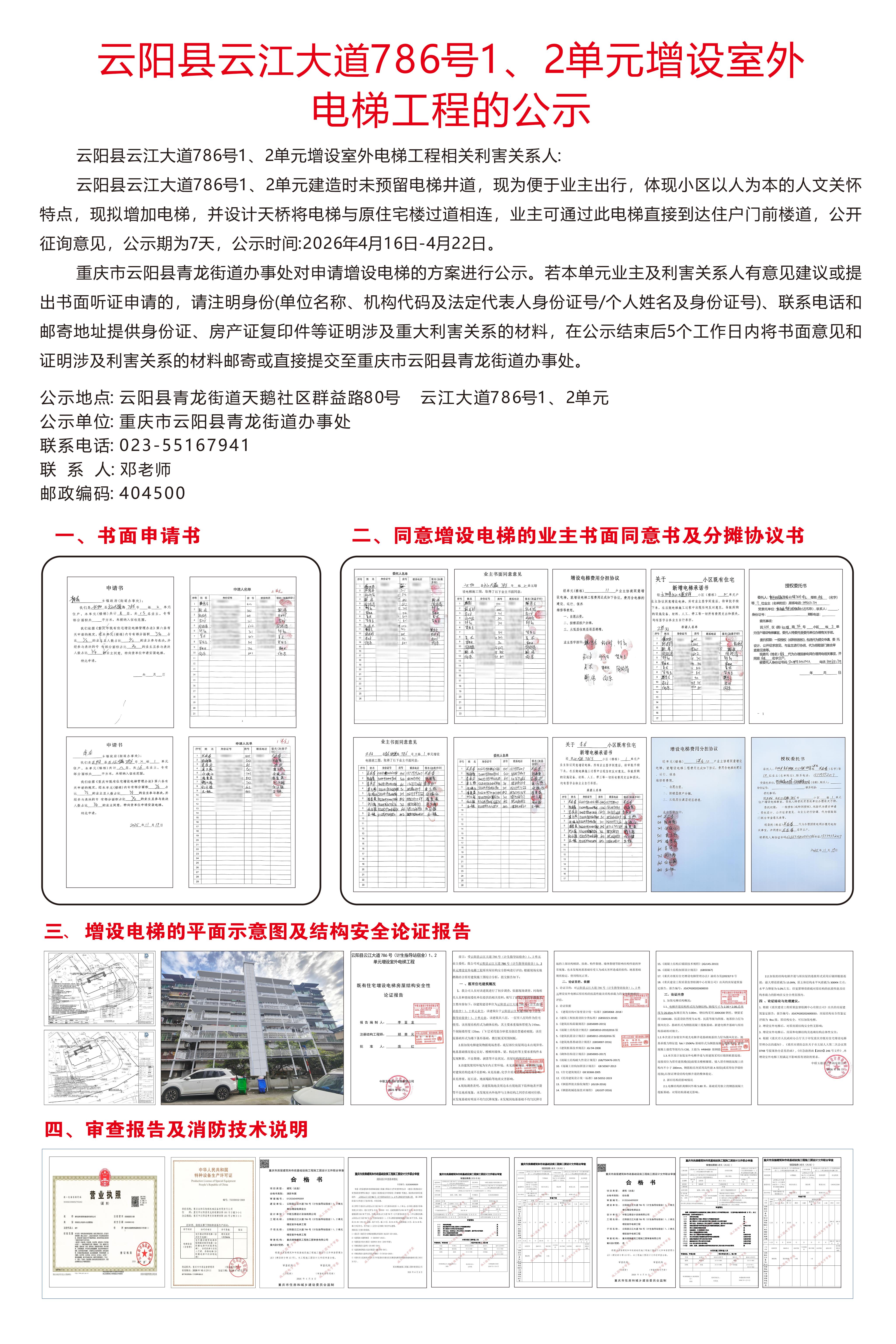 云阳县云江大道786号1、2单元增设室外电梯工程的公示