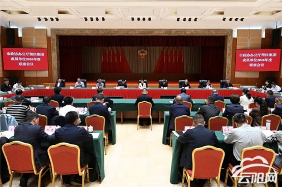 4月27日,市政协办公厅帮扶集团成员单位2026年度联席会议召开。市政协副主席谭家玲讲话、丁时勇主持,秘书长谢礼国参加。