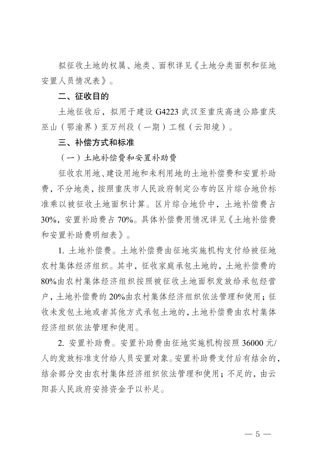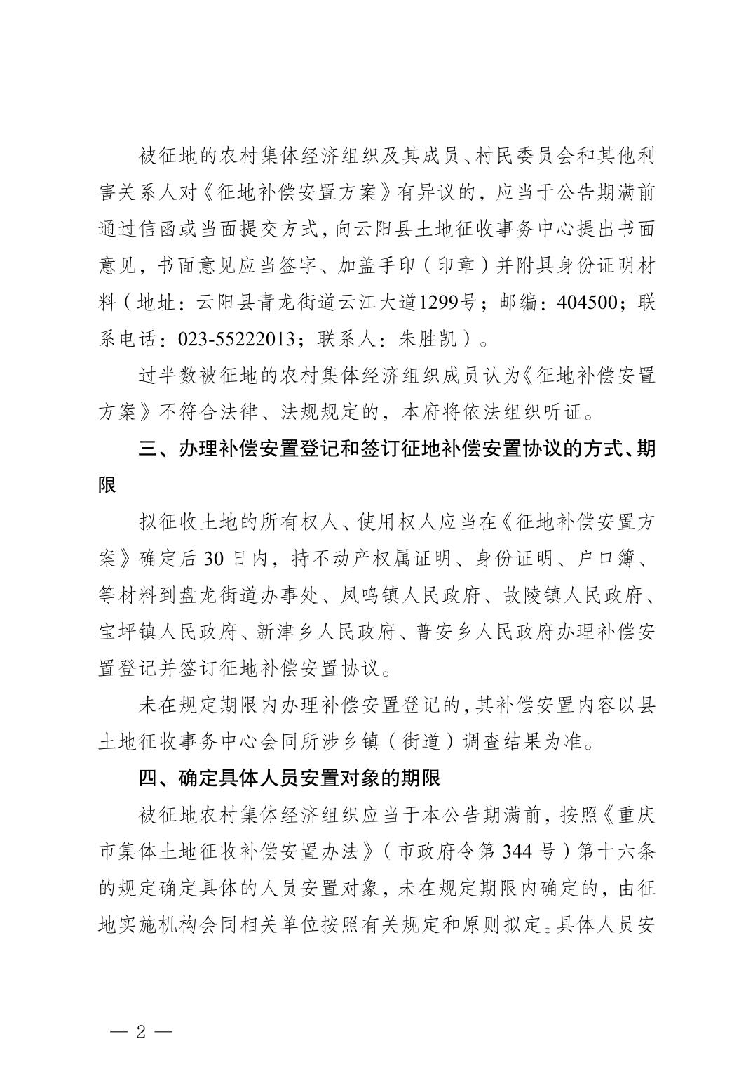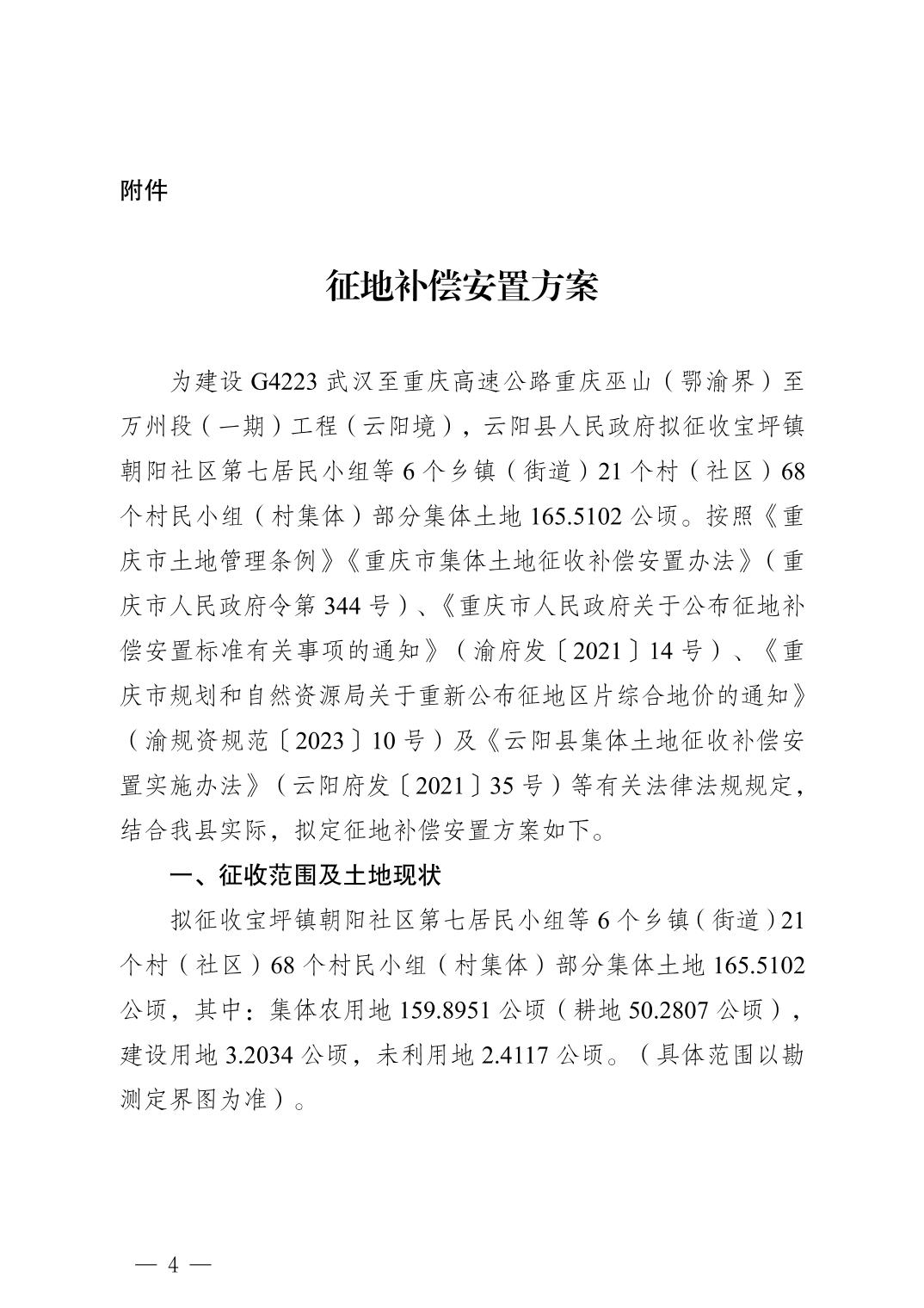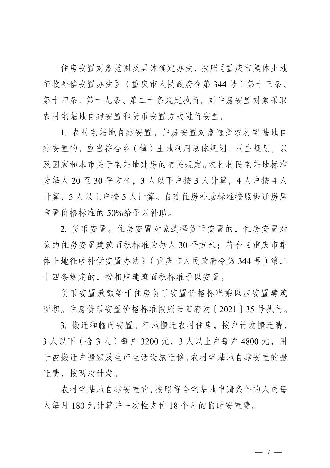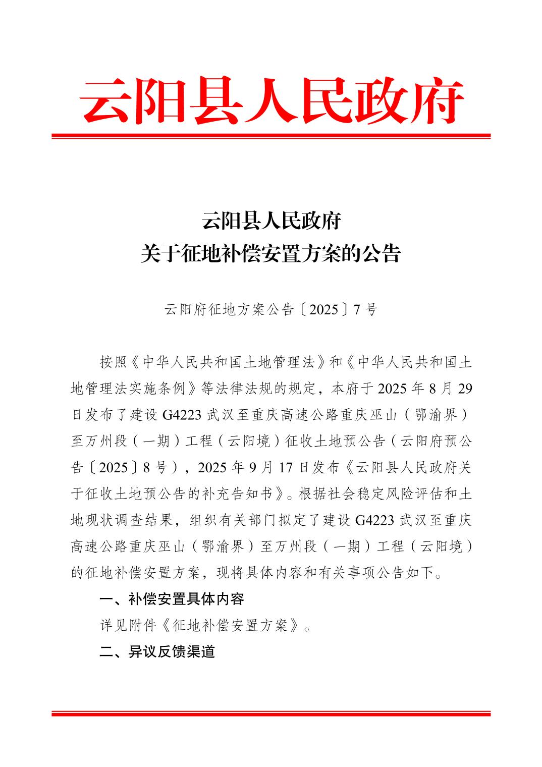 云阳县人民政府关于征地补偿安置方案的公告(云阳府征地方案公告〔2025〕7号)