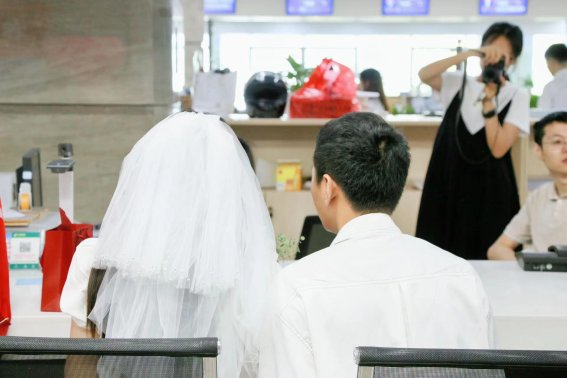 “今天是中国的传统节日,也是一个象征爱情的日子,我们特意做了准备,穿了一身漂亮的旗袍,希望给这一天留下不一样的纪念意义。”市民王小玲一脸幸福,早早地就和爱人来领证,他们还请了朋友来为自己拍照,记录下幸福的时刻。