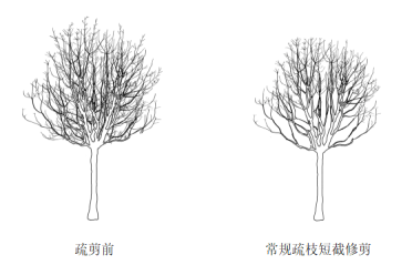3.2.3 坚持常规修剪为主,适当采用短截、疏枝等方法,定期进行树木修枝整形,维护树木良好冠容。