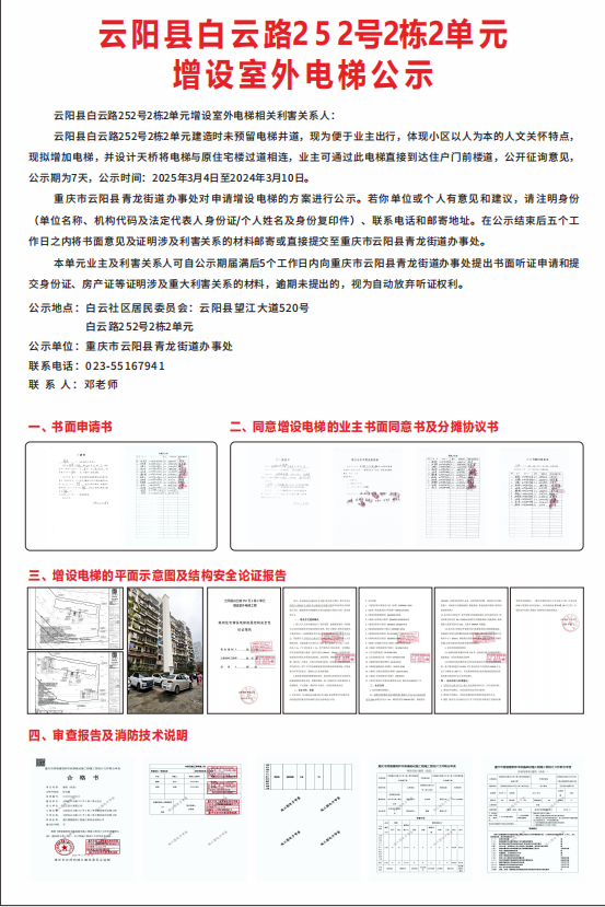 云阳县白云路252号2栋2单元增设室外电梯公示