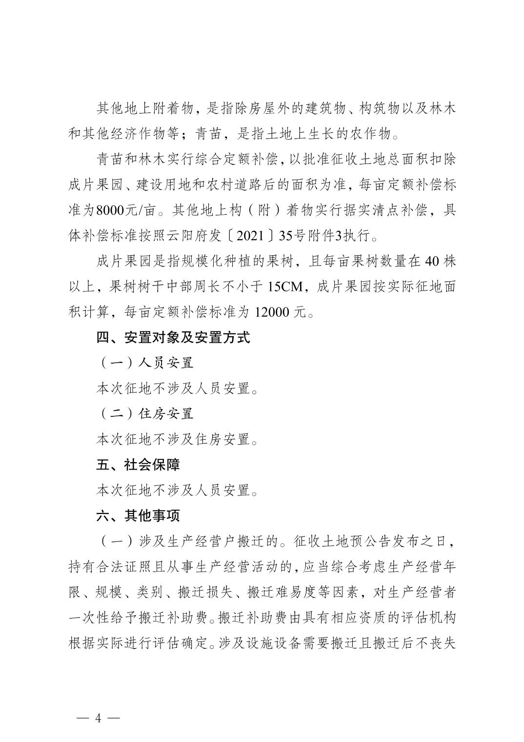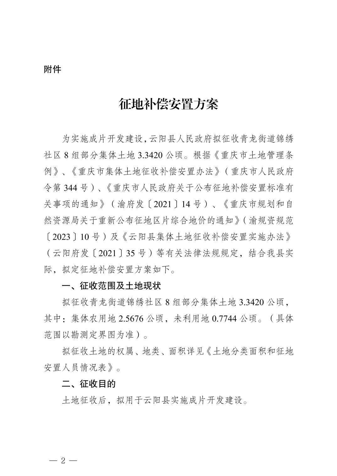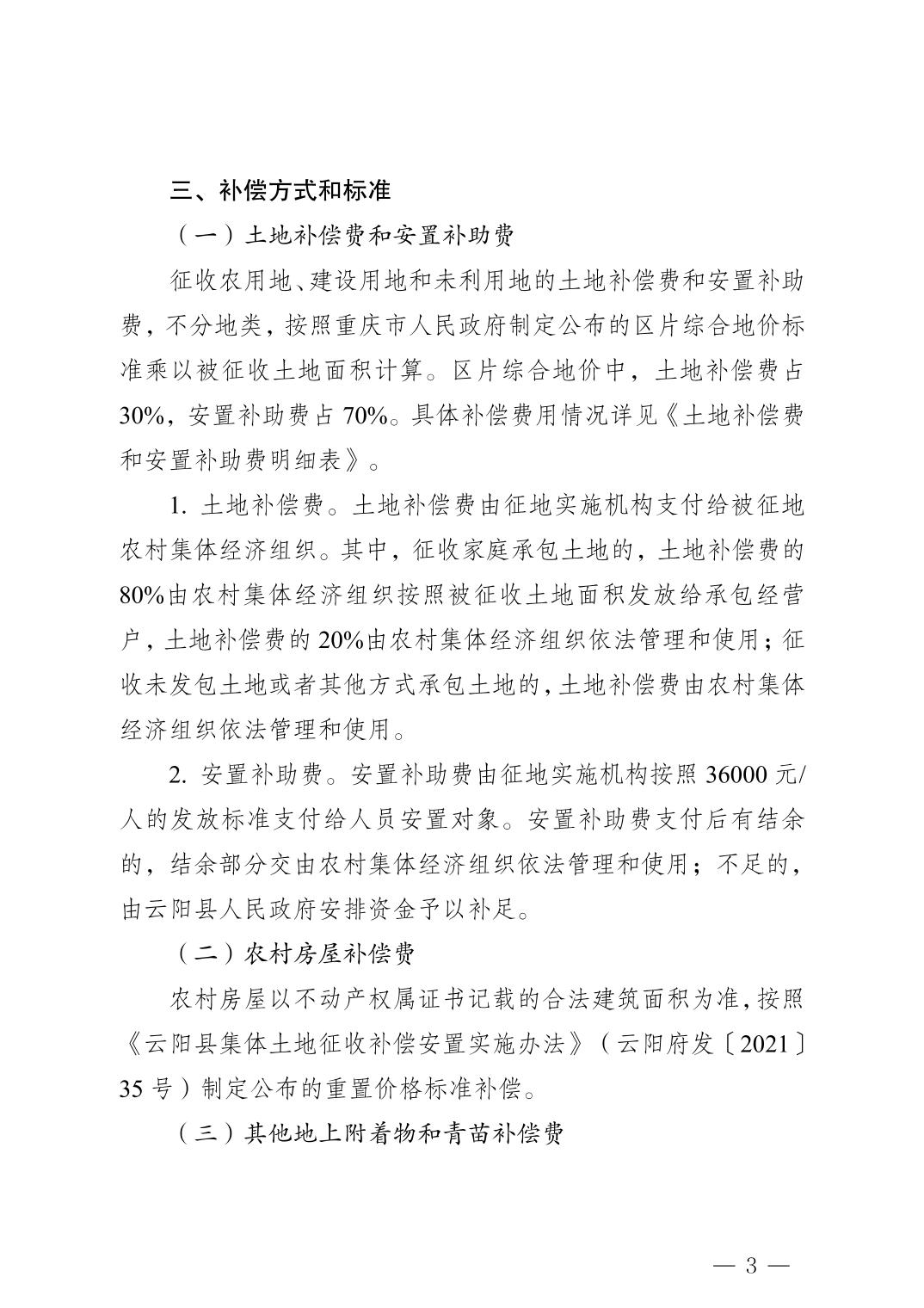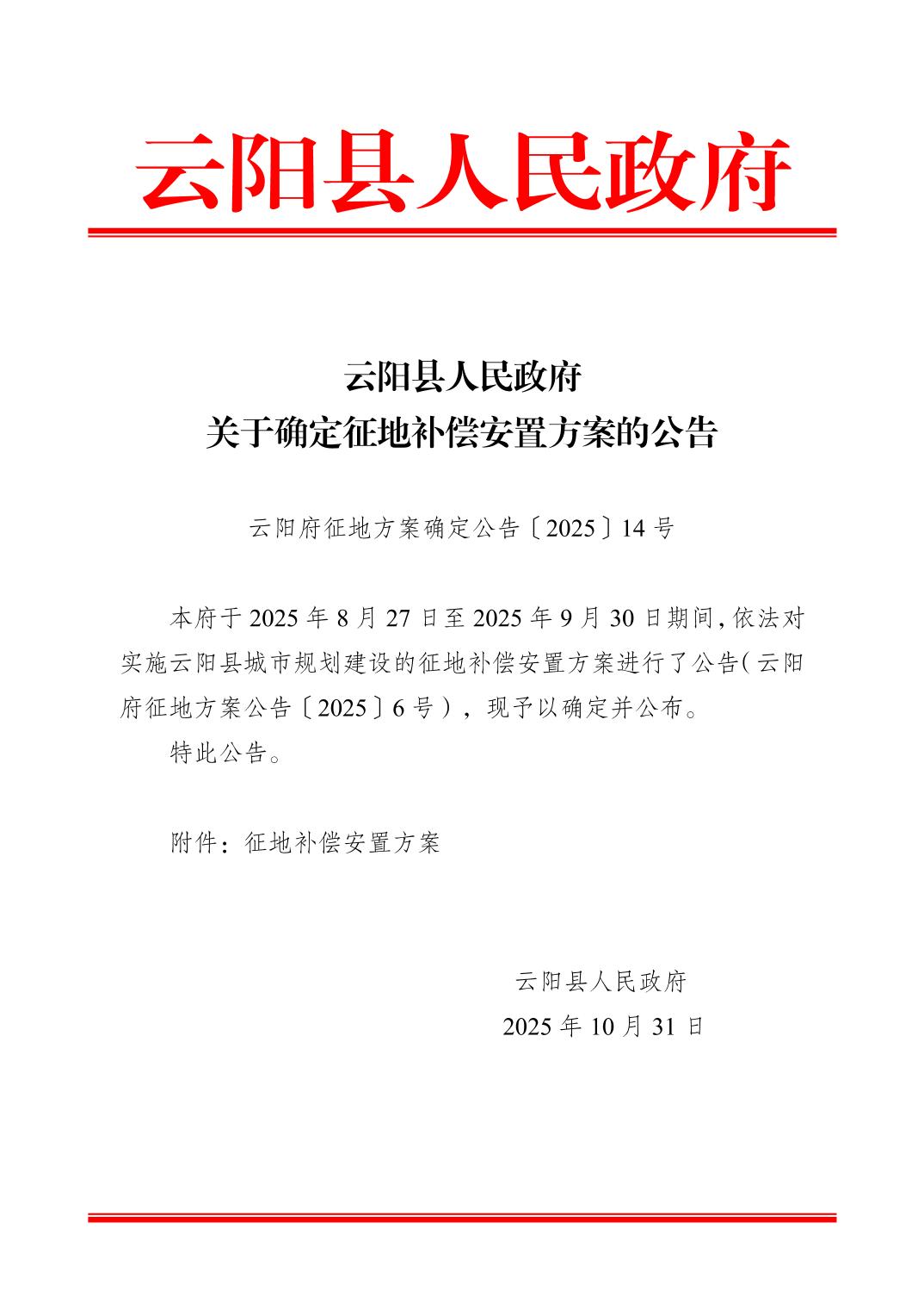 云阳县人民政府关于确定征地补偿安置方案的公告(云阳府征地方案确定公告〔2025〕 14号)