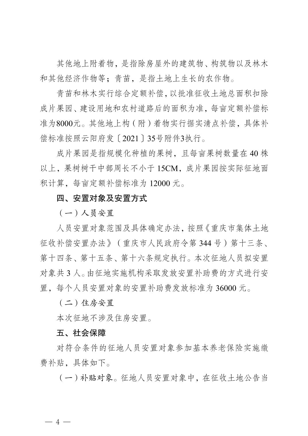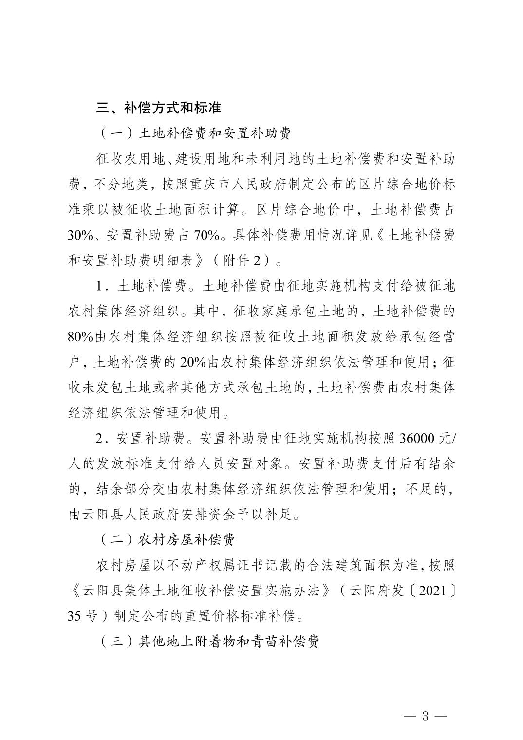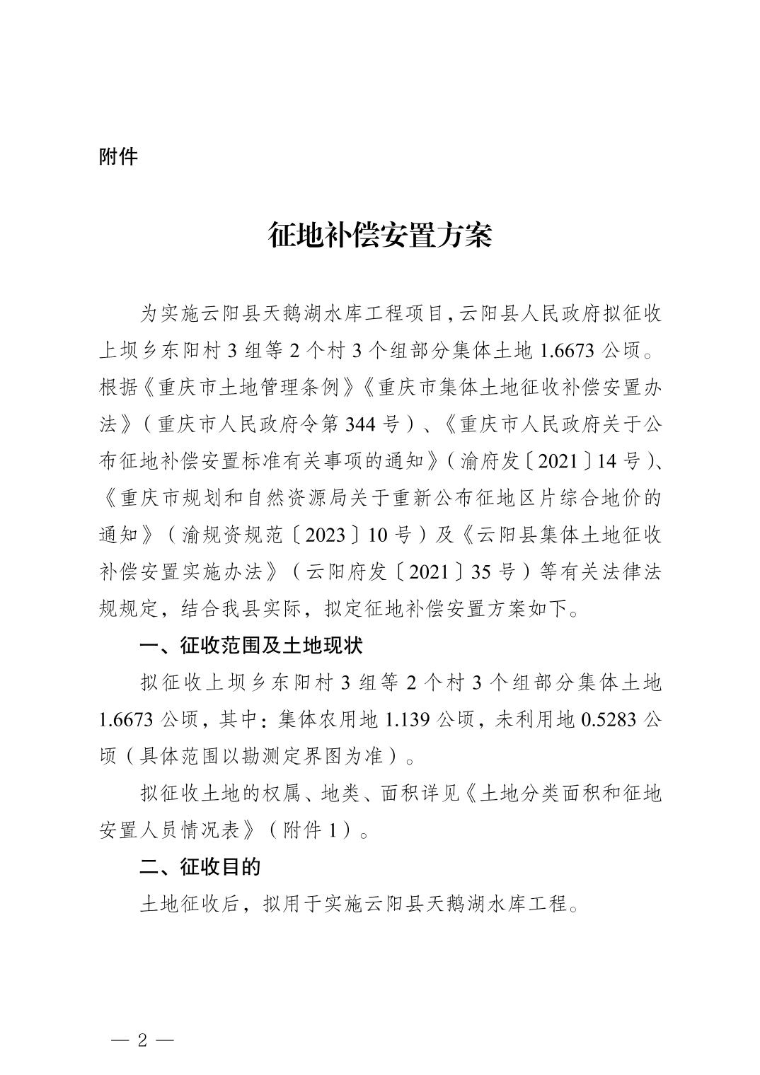 云阳县人民政府关于确定征地补偿安置方案的公告(云阳府征地方案确定公告〔2026〕 2号)