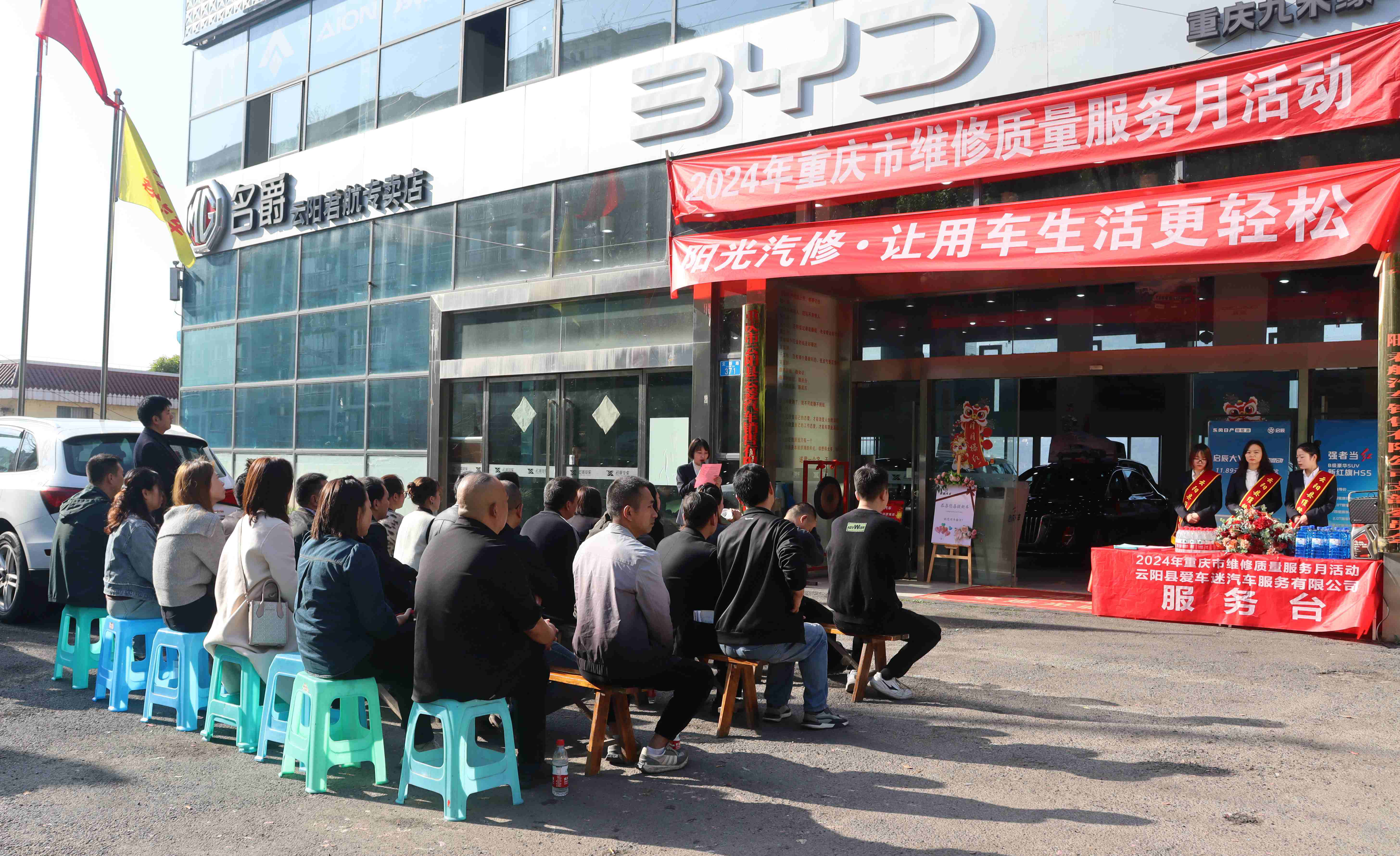 从3月1日起,云阳县所有汽车维修行业企业同时开展质量月活动,严格履行《重庆市汽车维修行业行为规范公约》,端正经营行为,自觉接受监督,不使用假冒劣质配件,不做虚假广告宣传,答疑客户咨询,受理客户意见,并免费向车主提供车辆检查和维修服务,截至目前,已免费检车1100余台,发放宣传单2000余份。