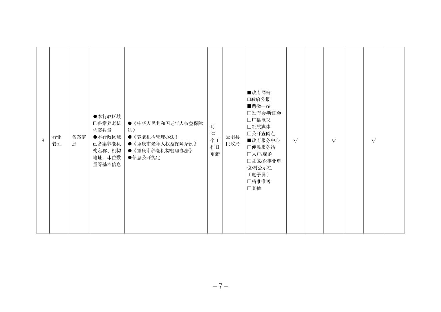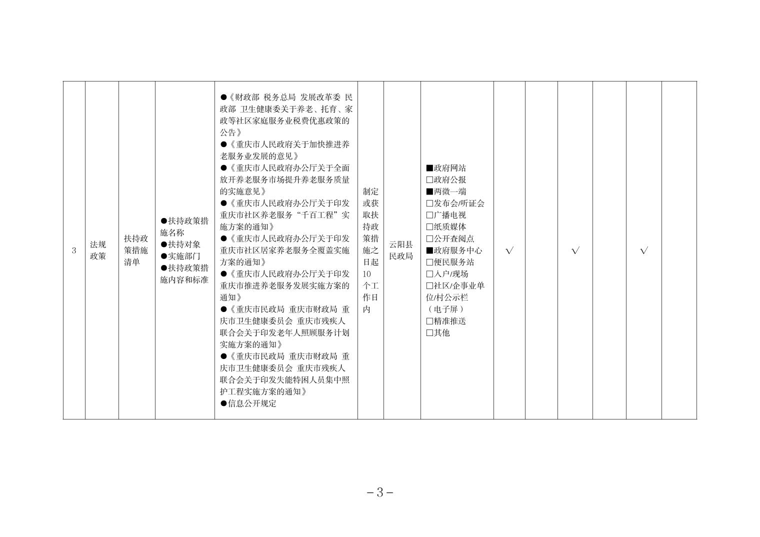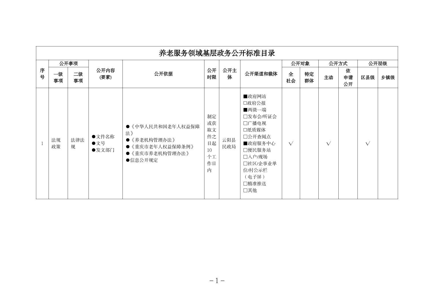 当前位置:部门>县民政局>政务公开>政府信息公开目录>基层政务公开>养老服务领域>标准目录