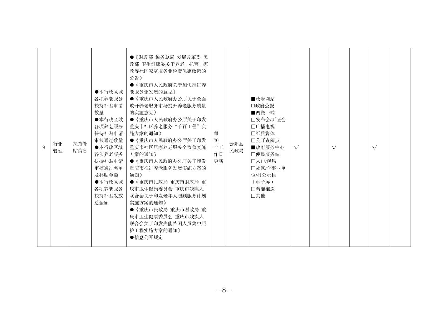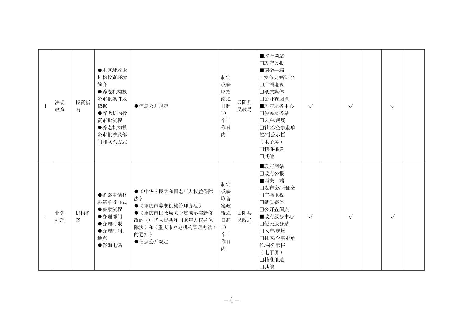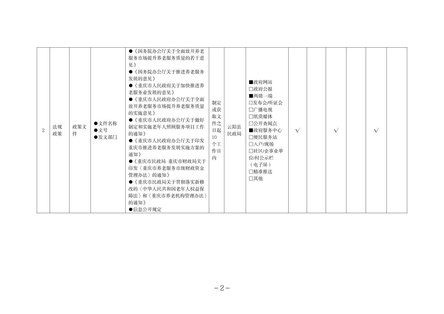 当前位置:部门>县民政局>政务公开>政府信息公开目录>基层政务公开>养老服务领域>标准目录