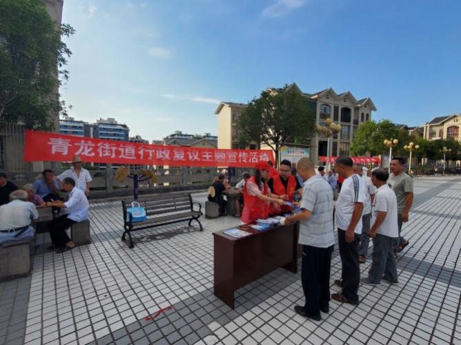 7月25日、7月26日,青龙司法所、水口司法所联合辖区平安办,分别在青龙街道亮水坪社区和水口镇夜合社区开展“复议为民解民忧,法治宣传促和谐”行政复议主题宣传活动。