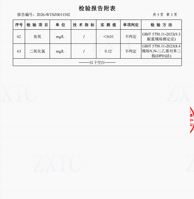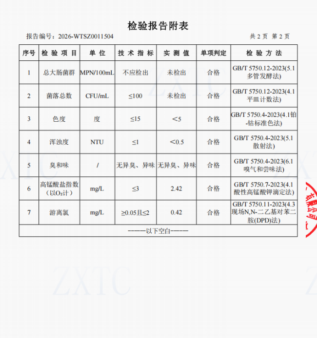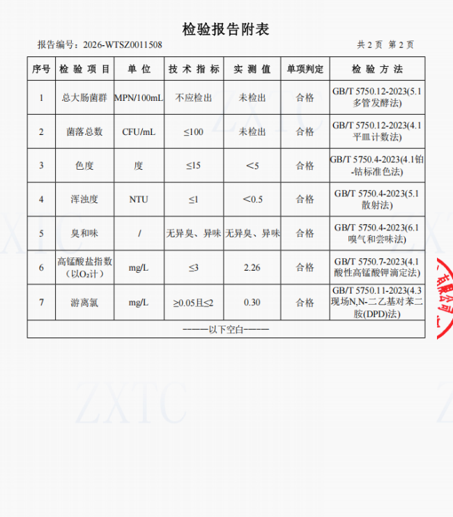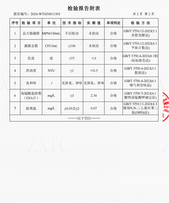 2、肖家湾水厂管网水(三峡梯城景区公厕)常规指标