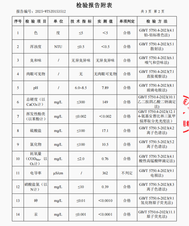 2、肖家湾水厂管网水(云阳县第二初级中学)常规指标