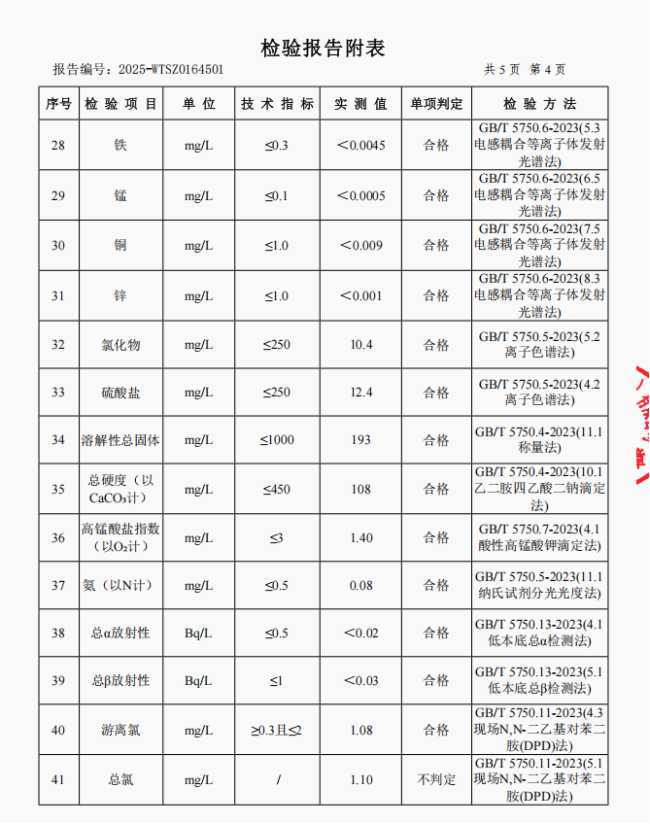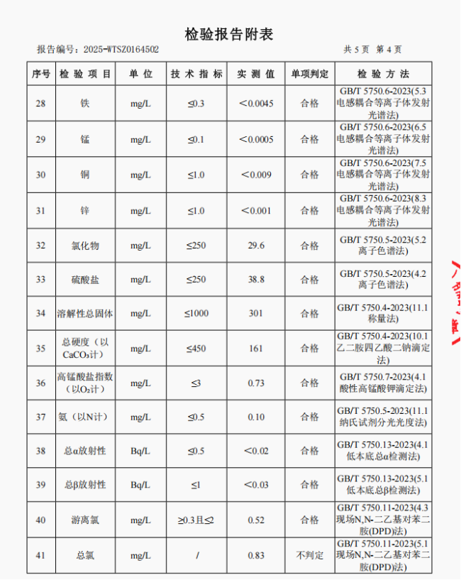 4、四方井水厂管网水(云阳县双江街道办事处)常规指标