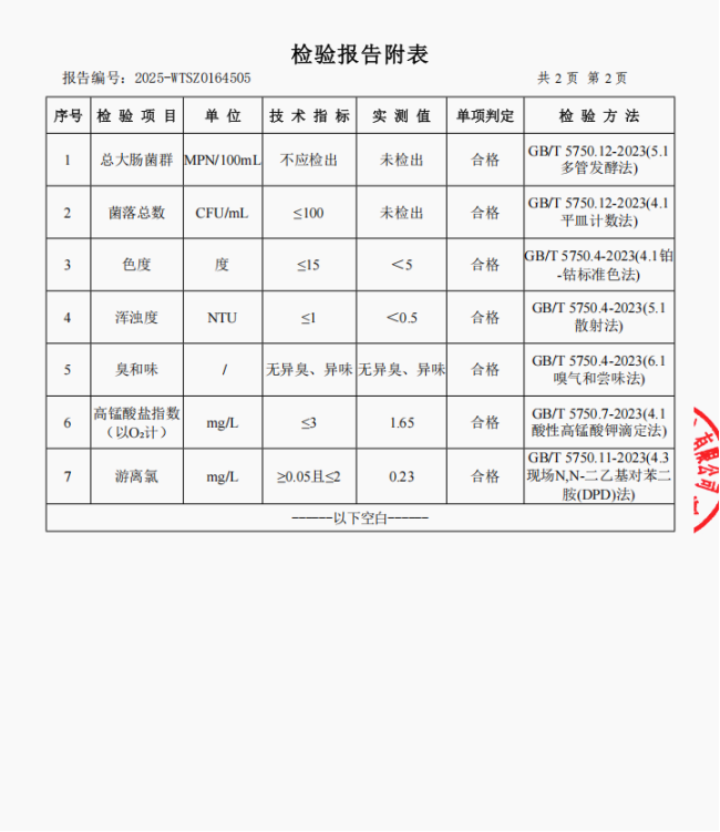 2、肖家湾水厂管网水(景苑)常规指标