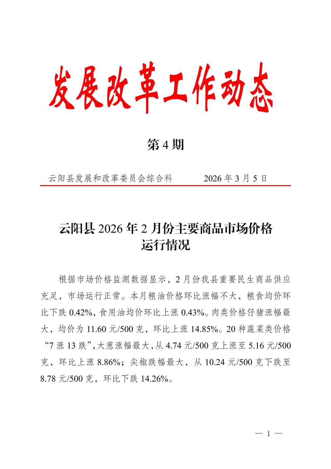 云阳县2026年2月份主要商品市场价格运行情况及走势分析