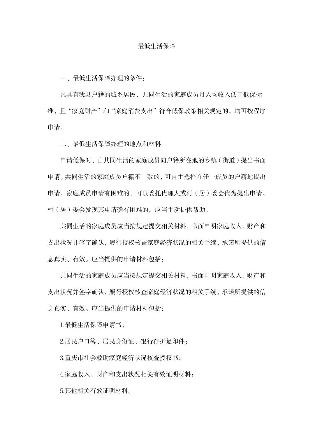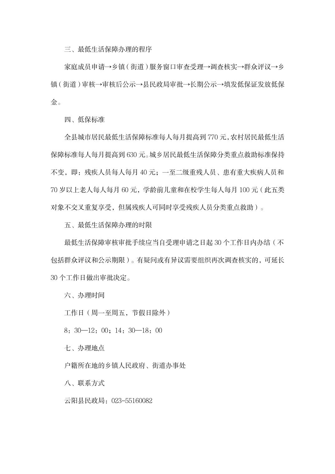 云阳县最低生活保障服务指南