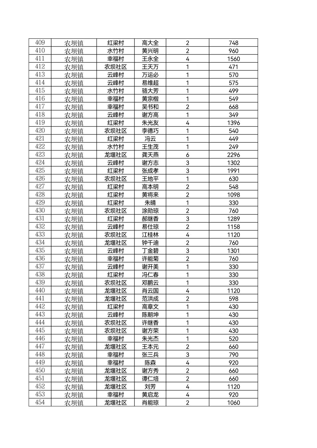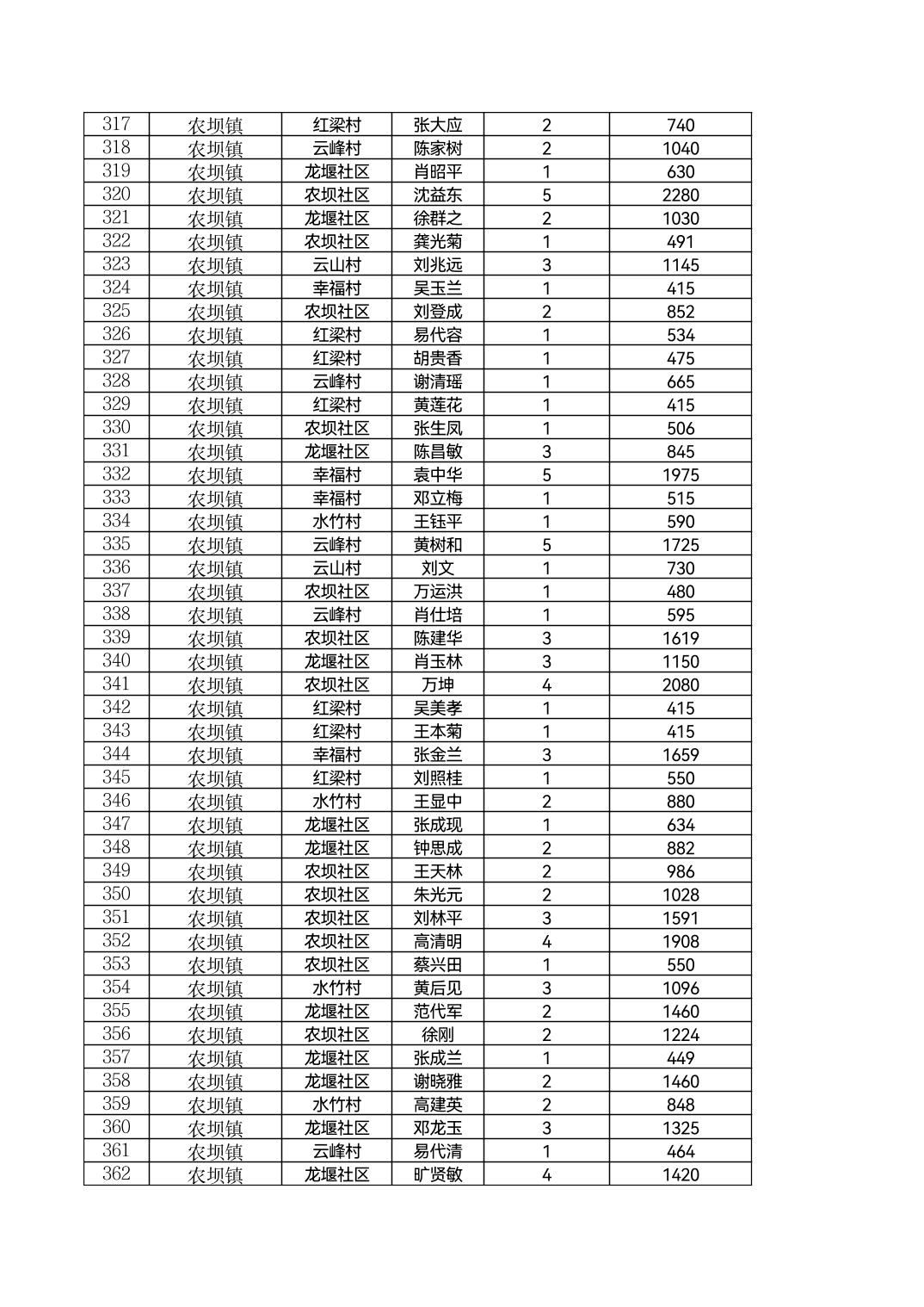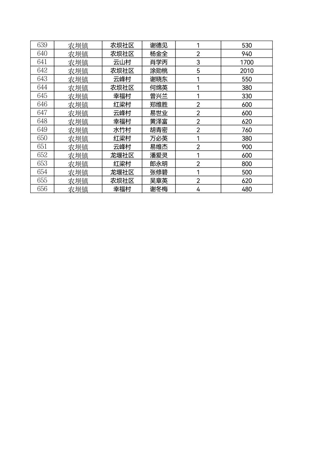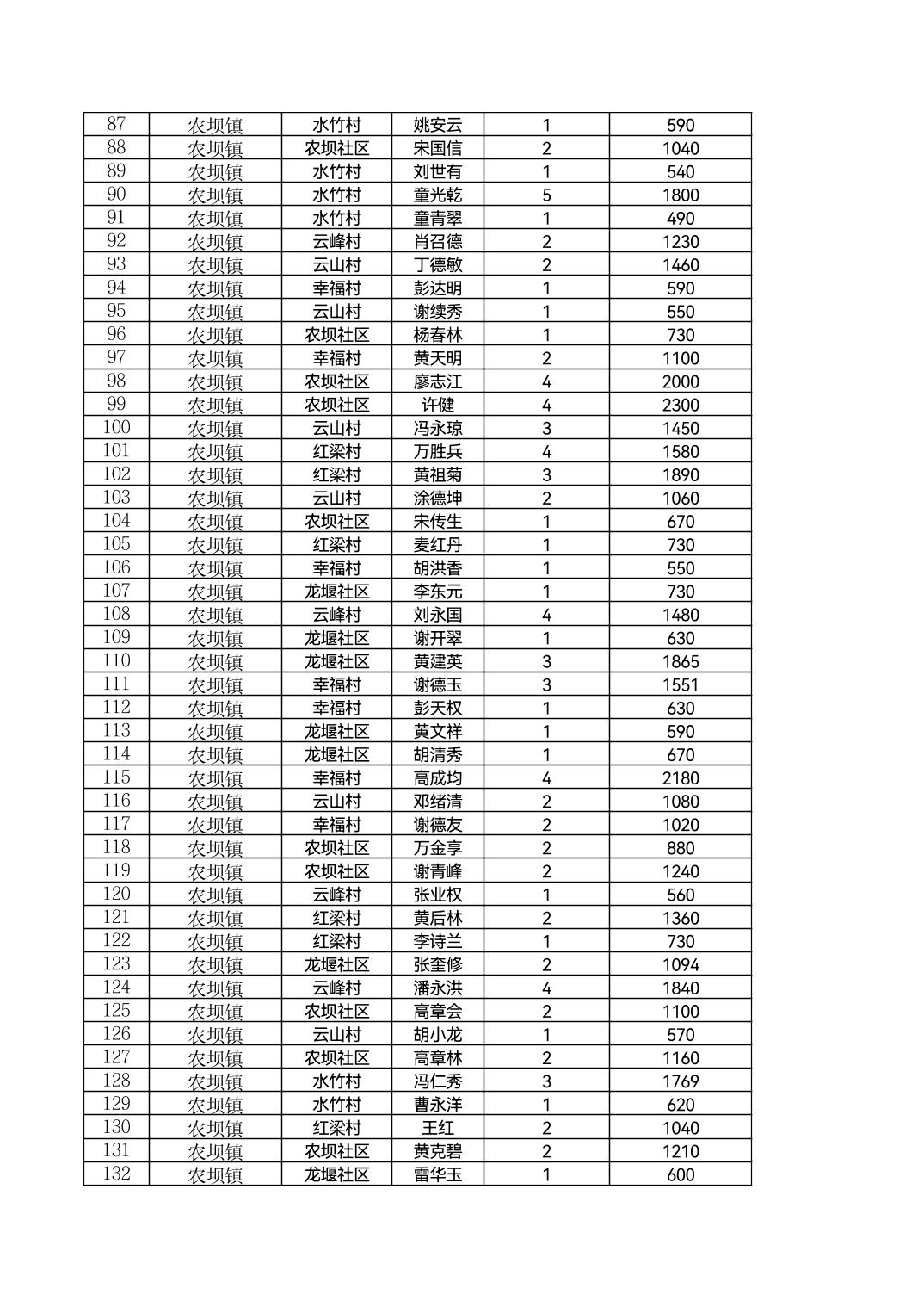 云阳县农坝镇2026年2月农村低保花名