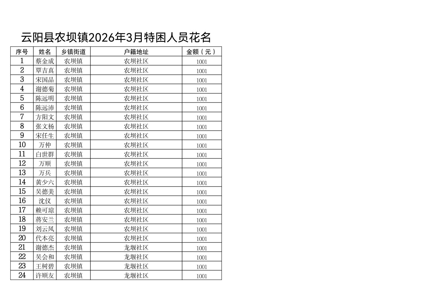 当前位置:乡镇>农坝镇人民政府>政务公开>政府信息公开目录>基层政务公开>社会救助领域>审核结果信息
