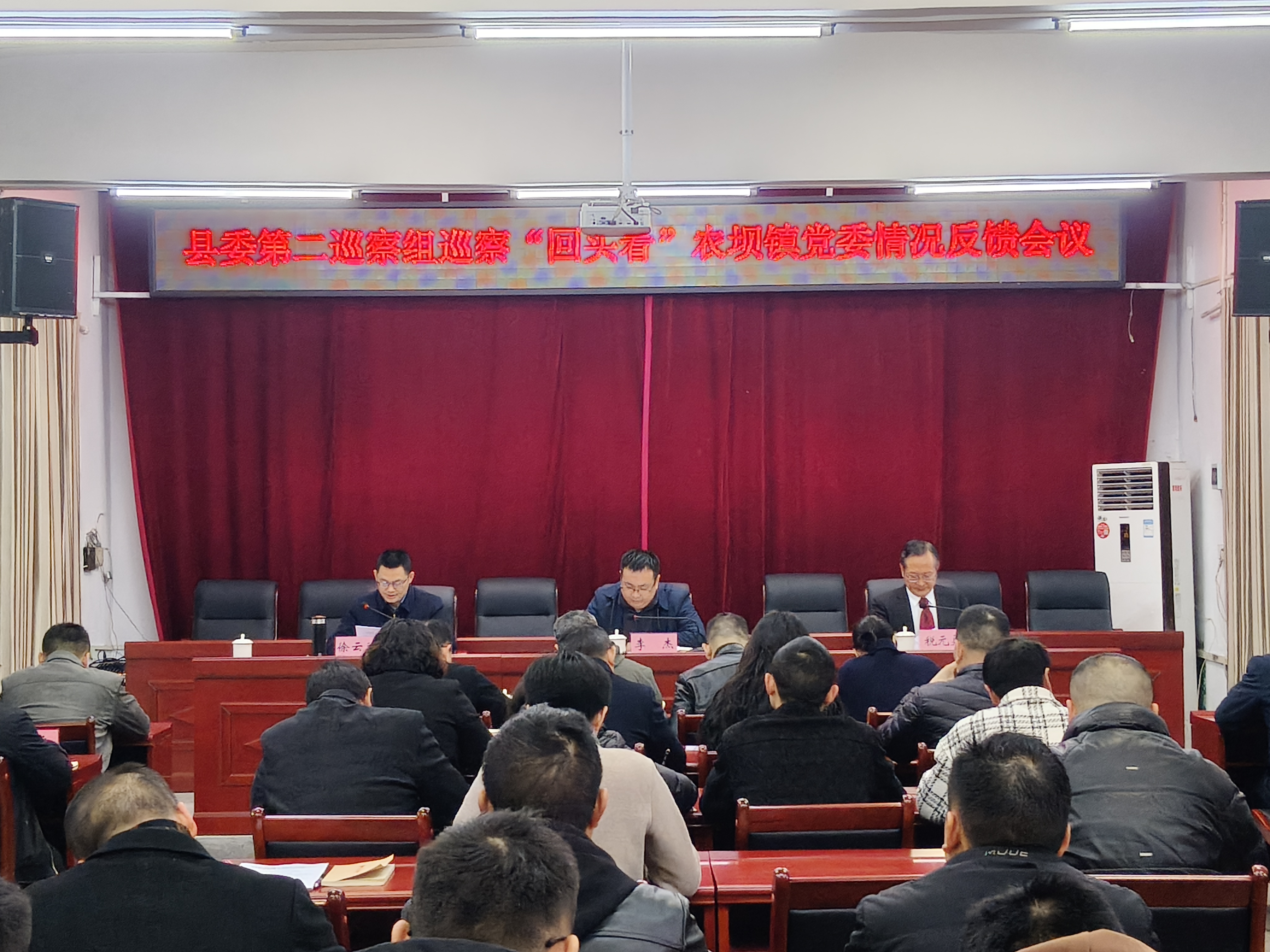 根据县委巡察工作安排,2026年3月24日,县委第二巡察组向农坝镇党委反馈巡察“回头看”情况。县纪委常委李杰主持召开向农坝镇党委主要负责人的反馈会议,参加巡察“回头看”农坝镇党委巡察“回头看”情况反馈会议,传达了县委书记陈道彬在听取十五届县委第九轮巡察综合情况汇报时的讲话精神,对抓好巡察整改工作提出要求。县委第二巡察组组长税元勇同志分别向农坝镇党委主要负责人和领导班子反馈了巡察“回头看”情况。徐云翔同志主持反馈大会并就做好巡察“回头看”整改工作表态。