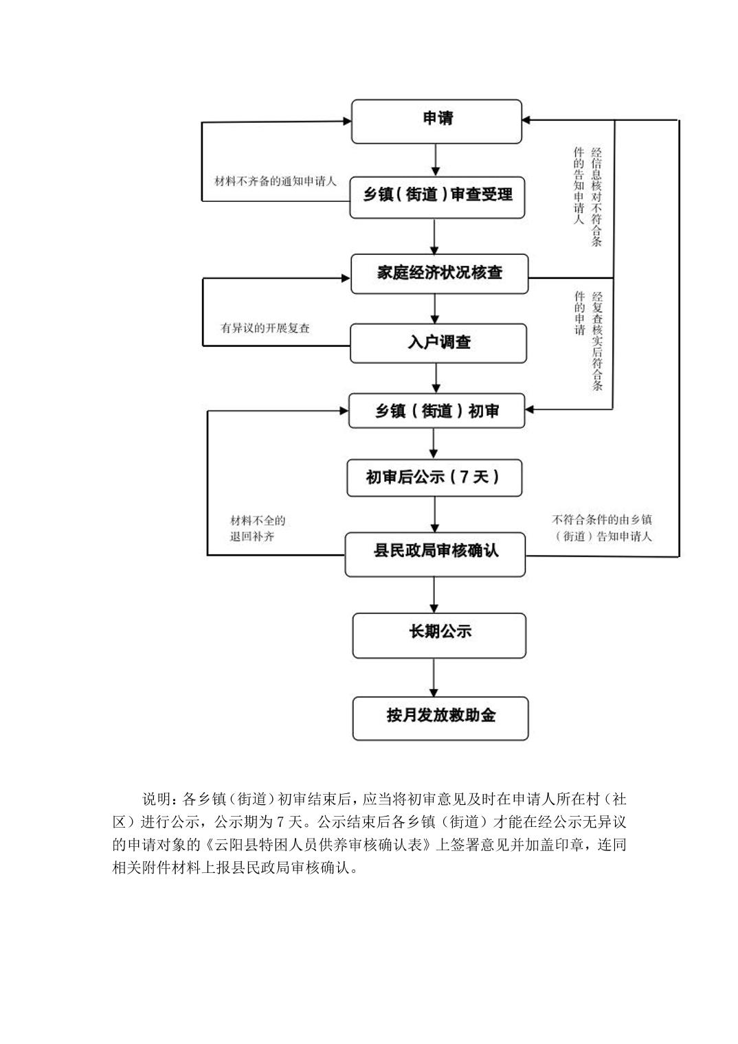云阳县特困人员供养申请审核流程图