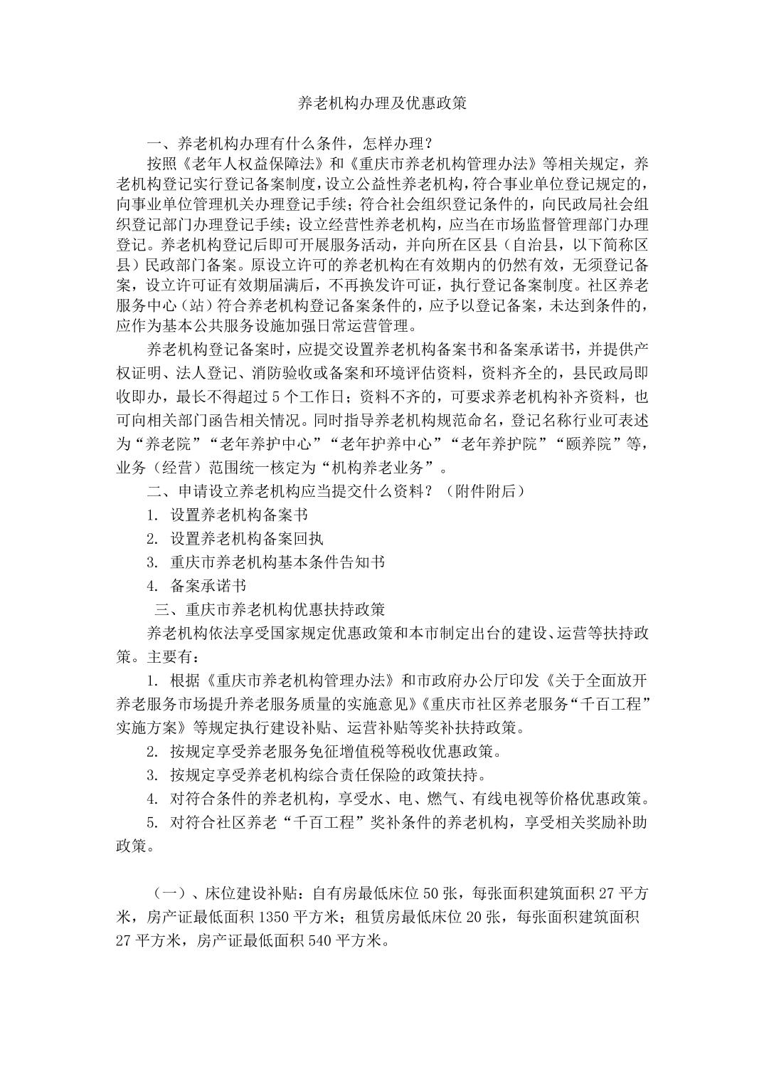 养老机构办理及优惠政策