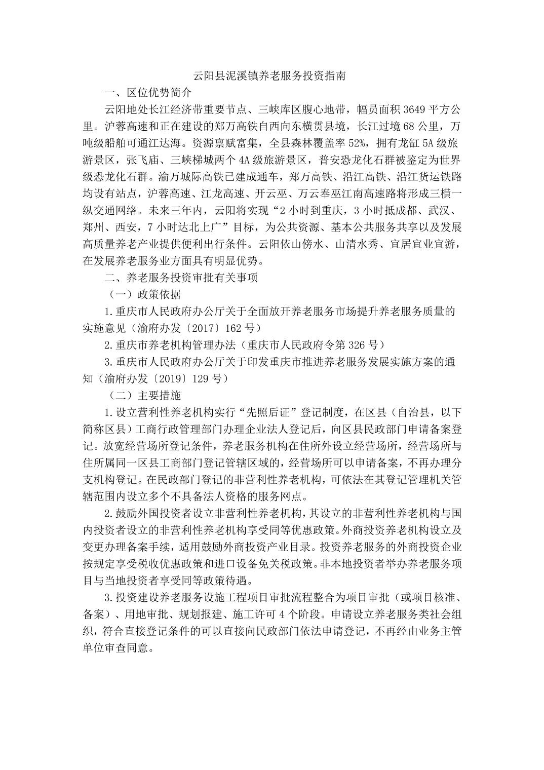 云阳县泥溪镇养老服务投资指南