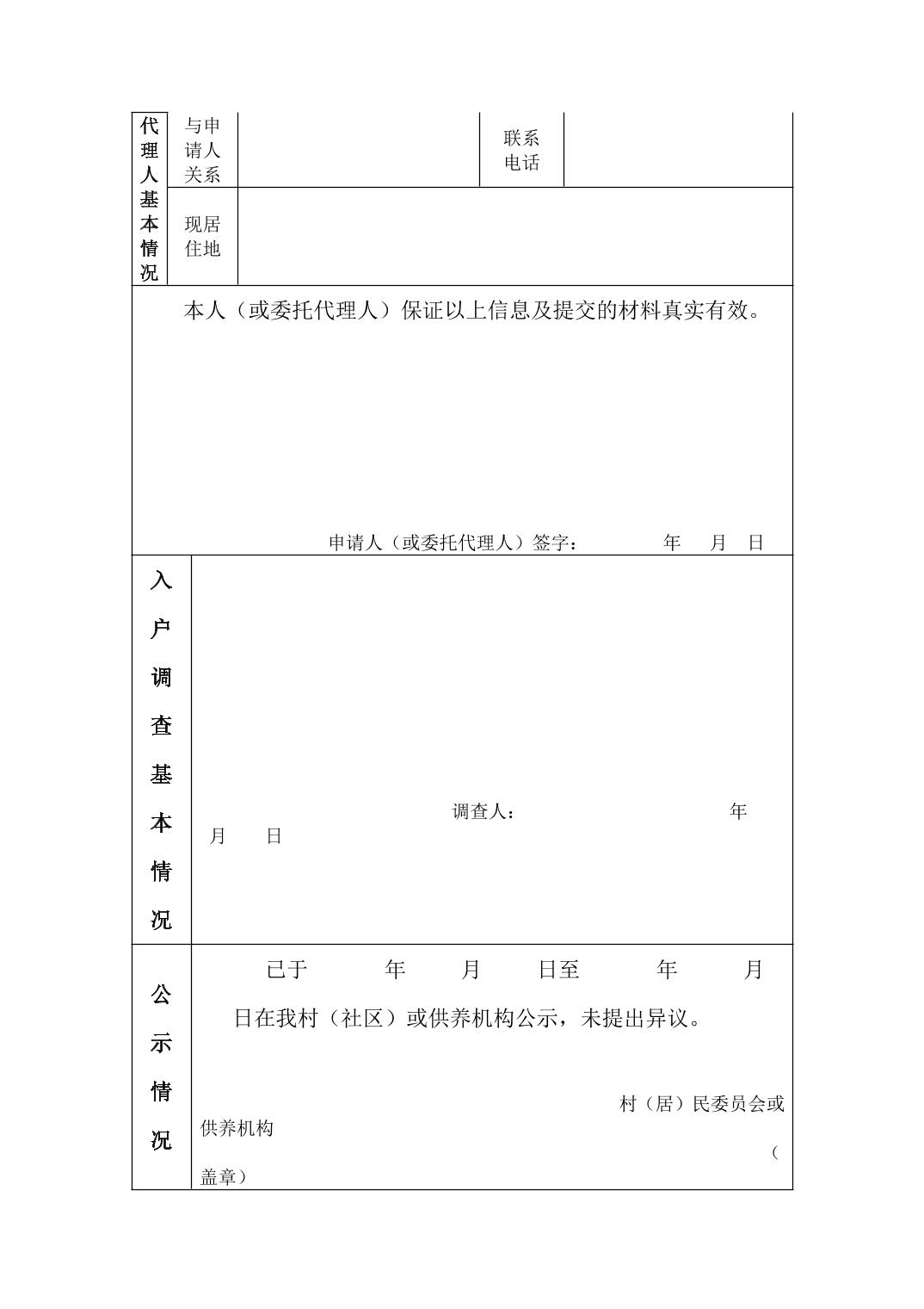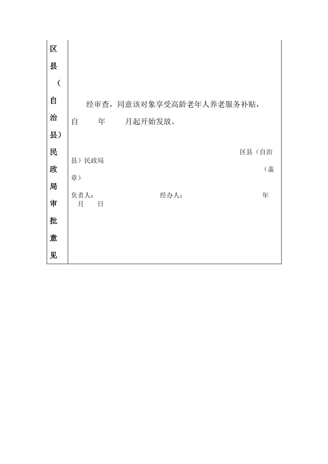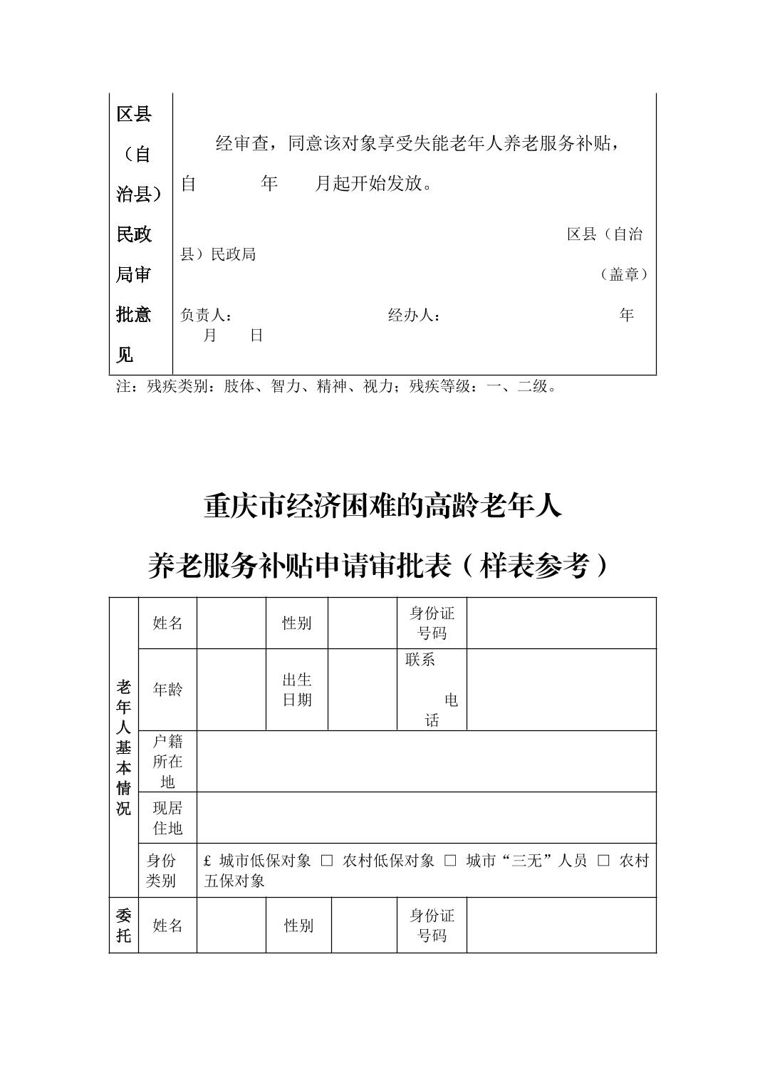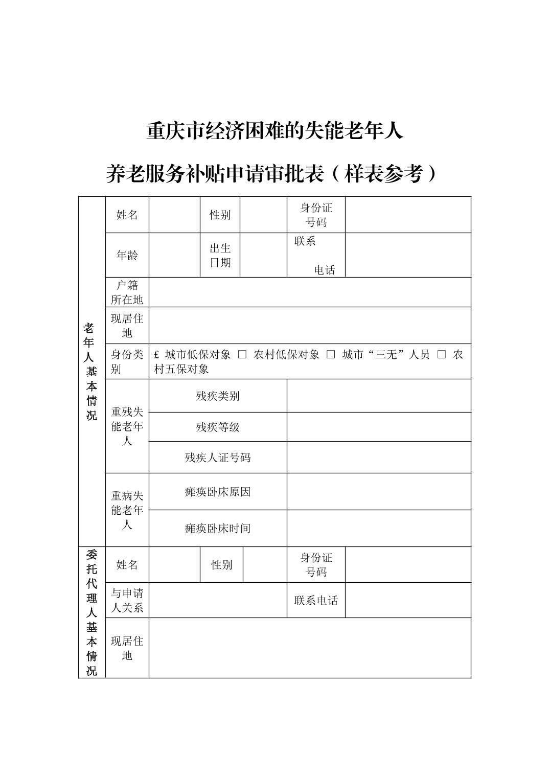 重庆市经济困难的失能老年人养老服务补贴申请审批表(样表参考)