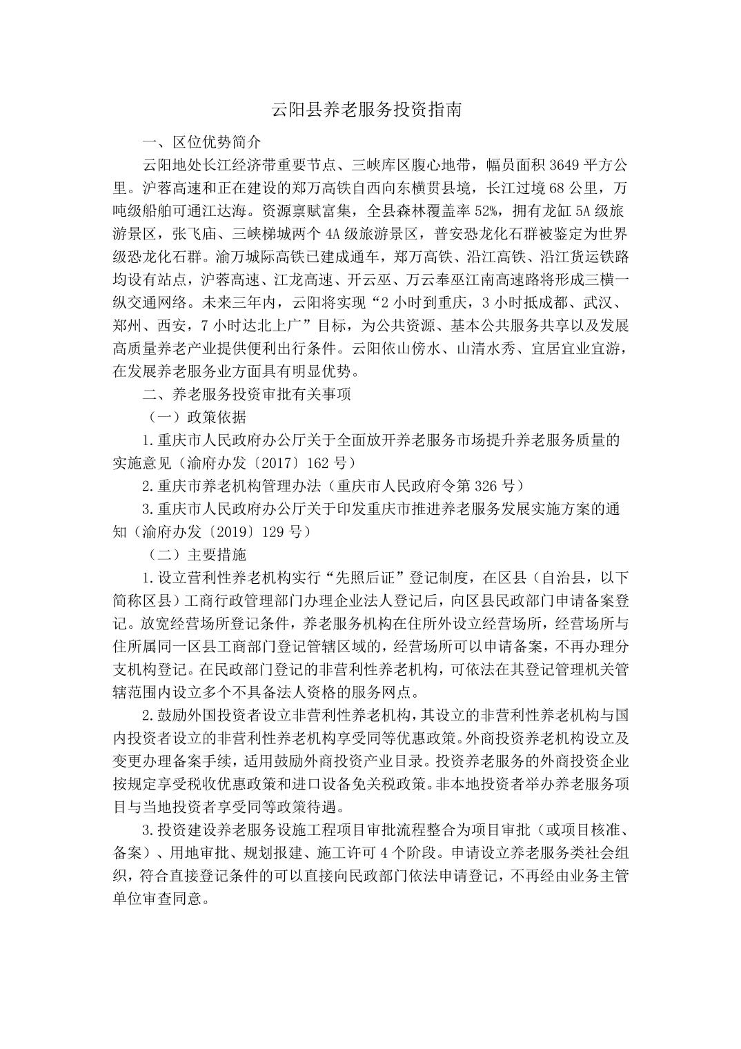 云阳县养老服务投资指南