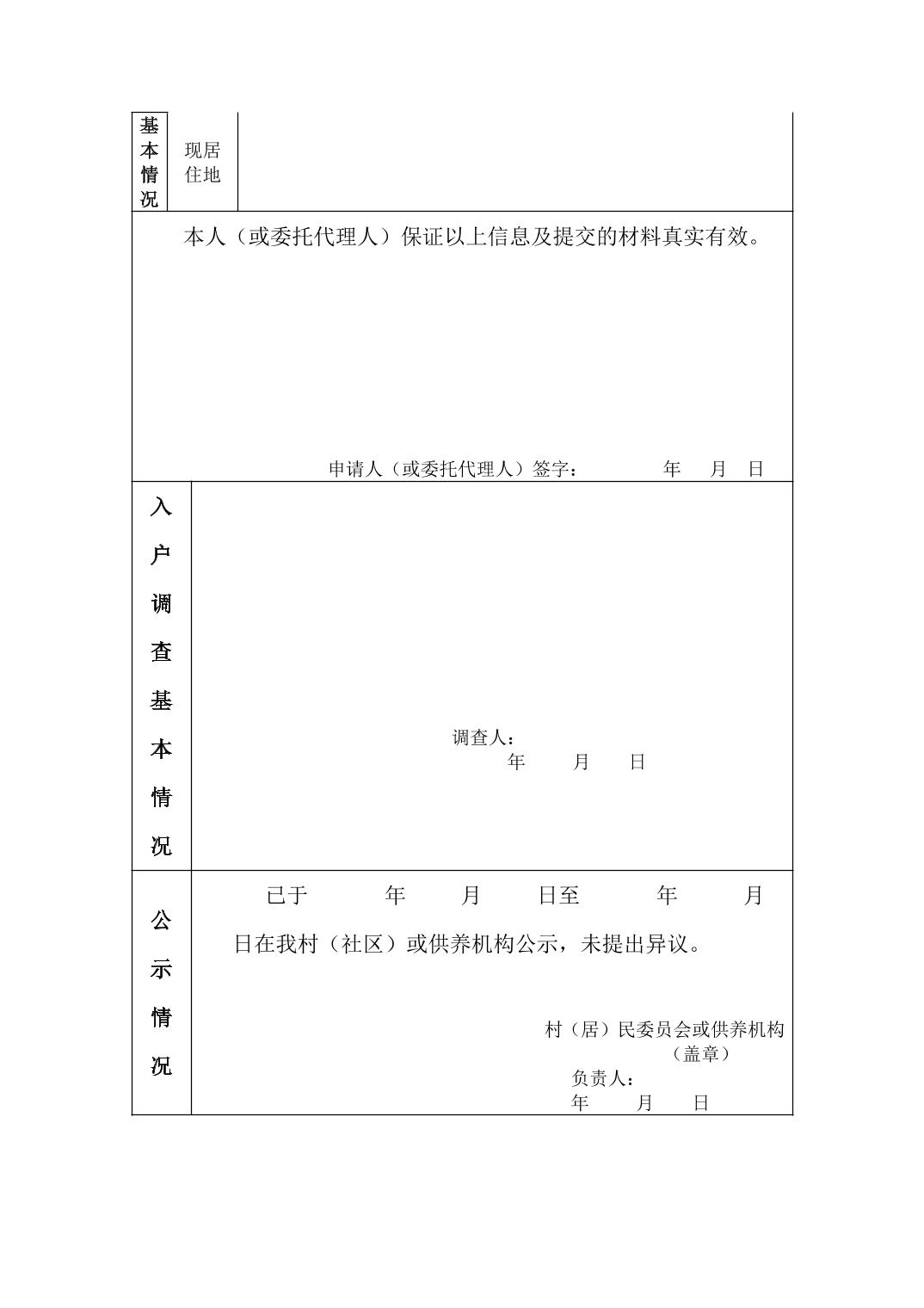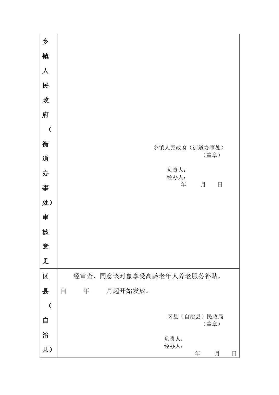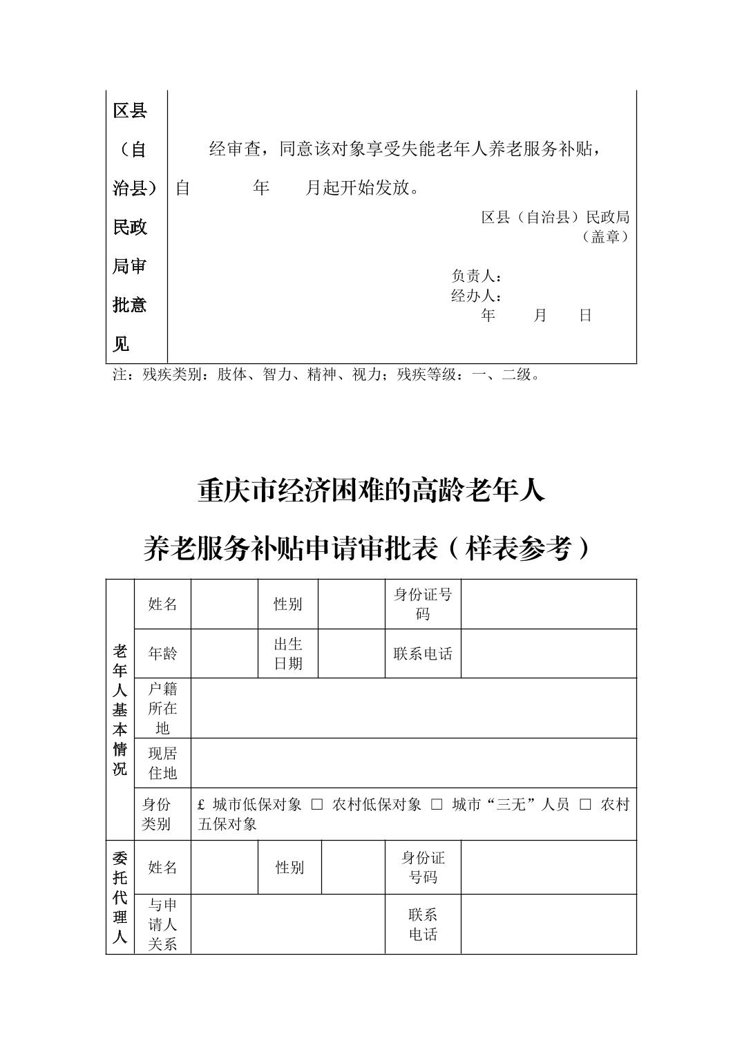 重庆市经济困难的失能老年人养老服务补贴申请审批表(样表参考)