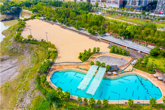 自行车道、跑步道和漫步道延绵不断;人工海沙沙滩、无动力设备儿童公园、人工草坪明珠镶嵌;外滩公园、四方井公园、白兔井公园等公园节点星罗棋布。