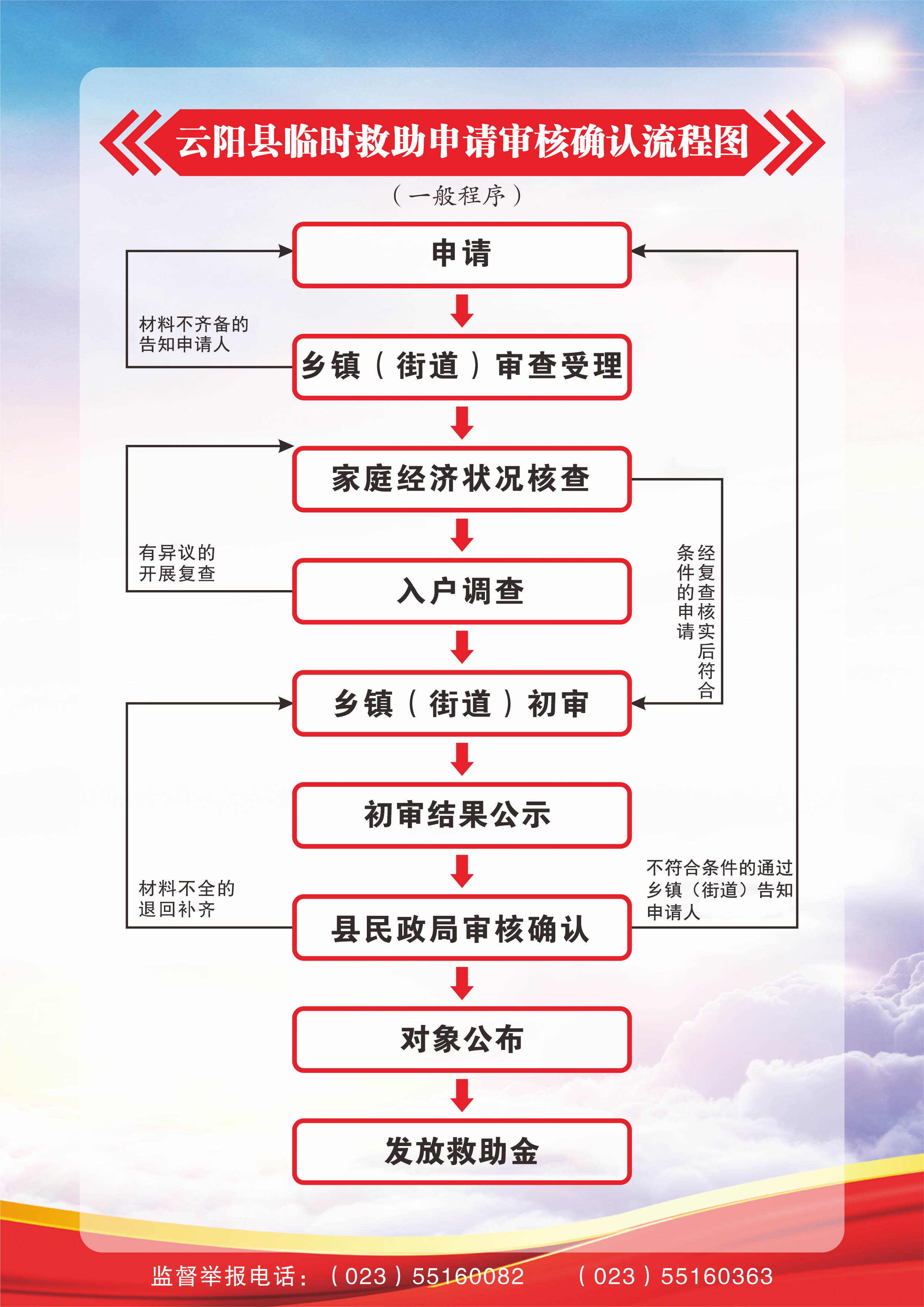 云阳县临时救助申请审核确认流程图