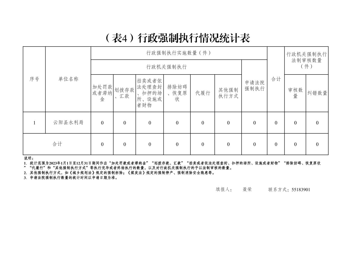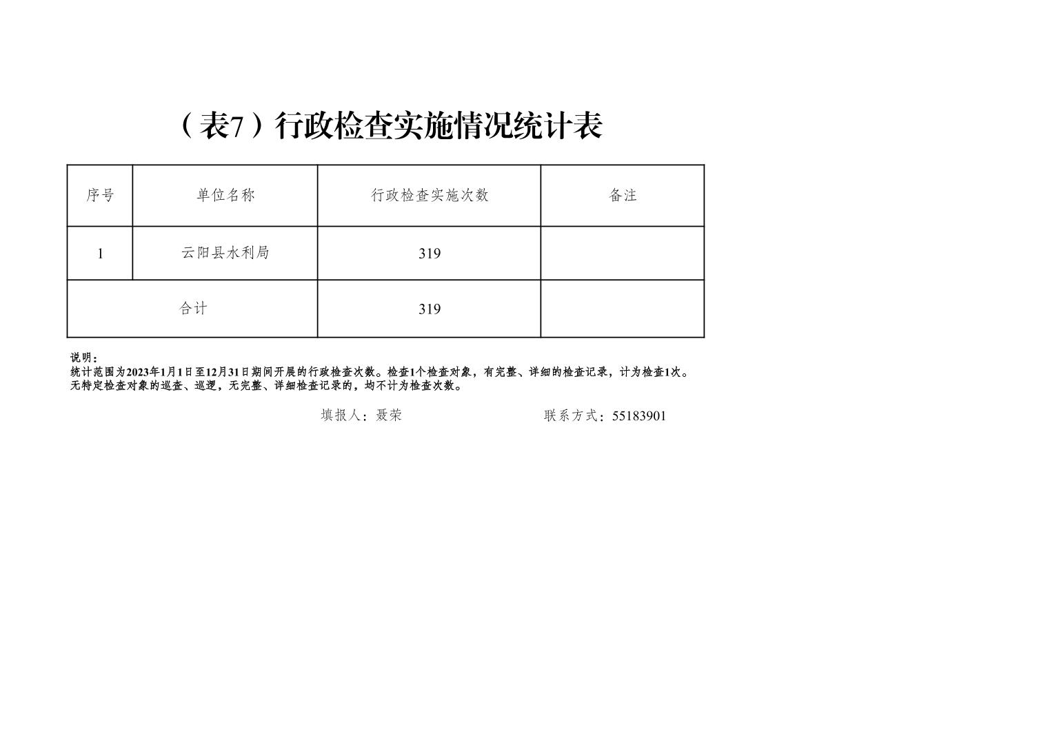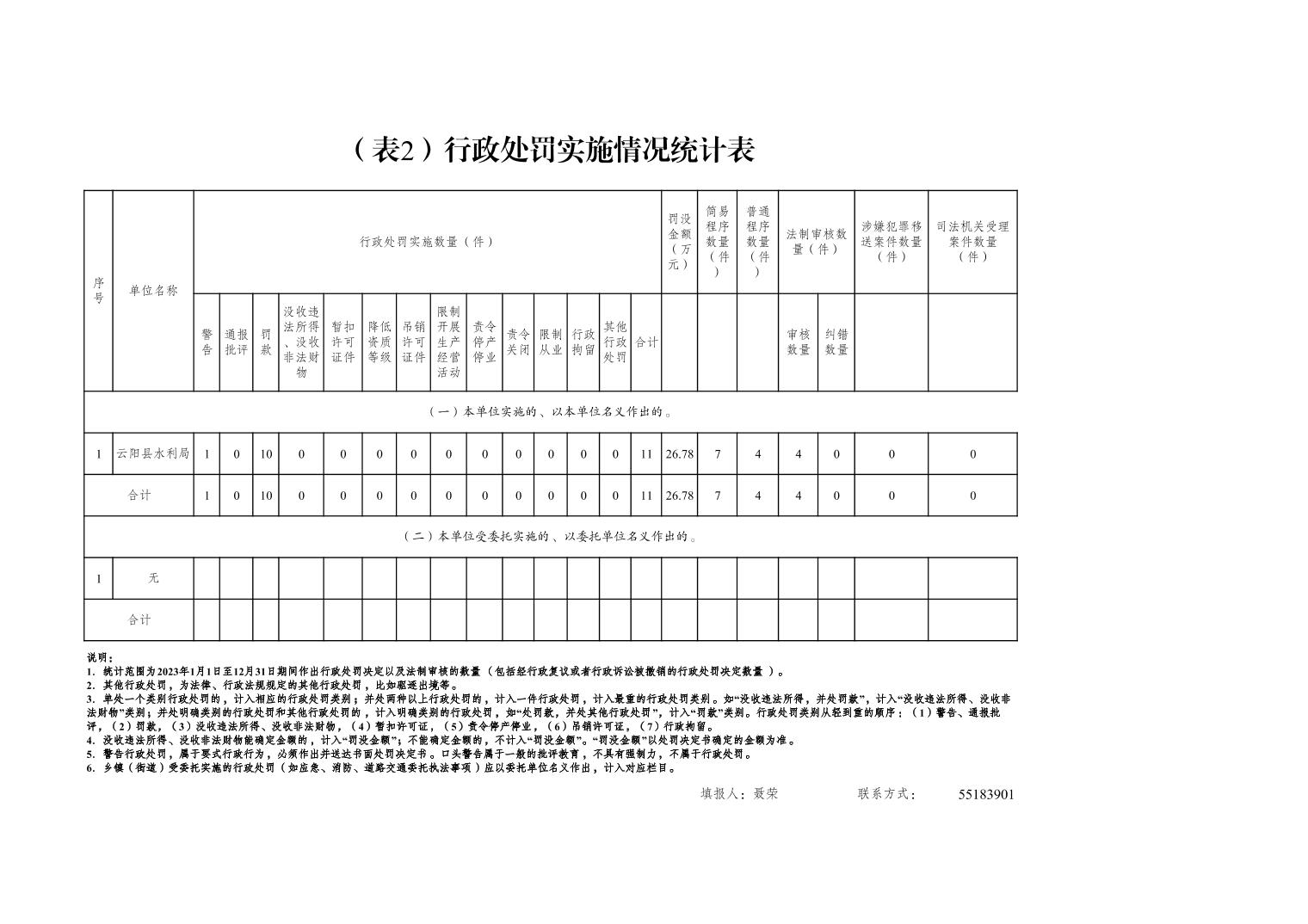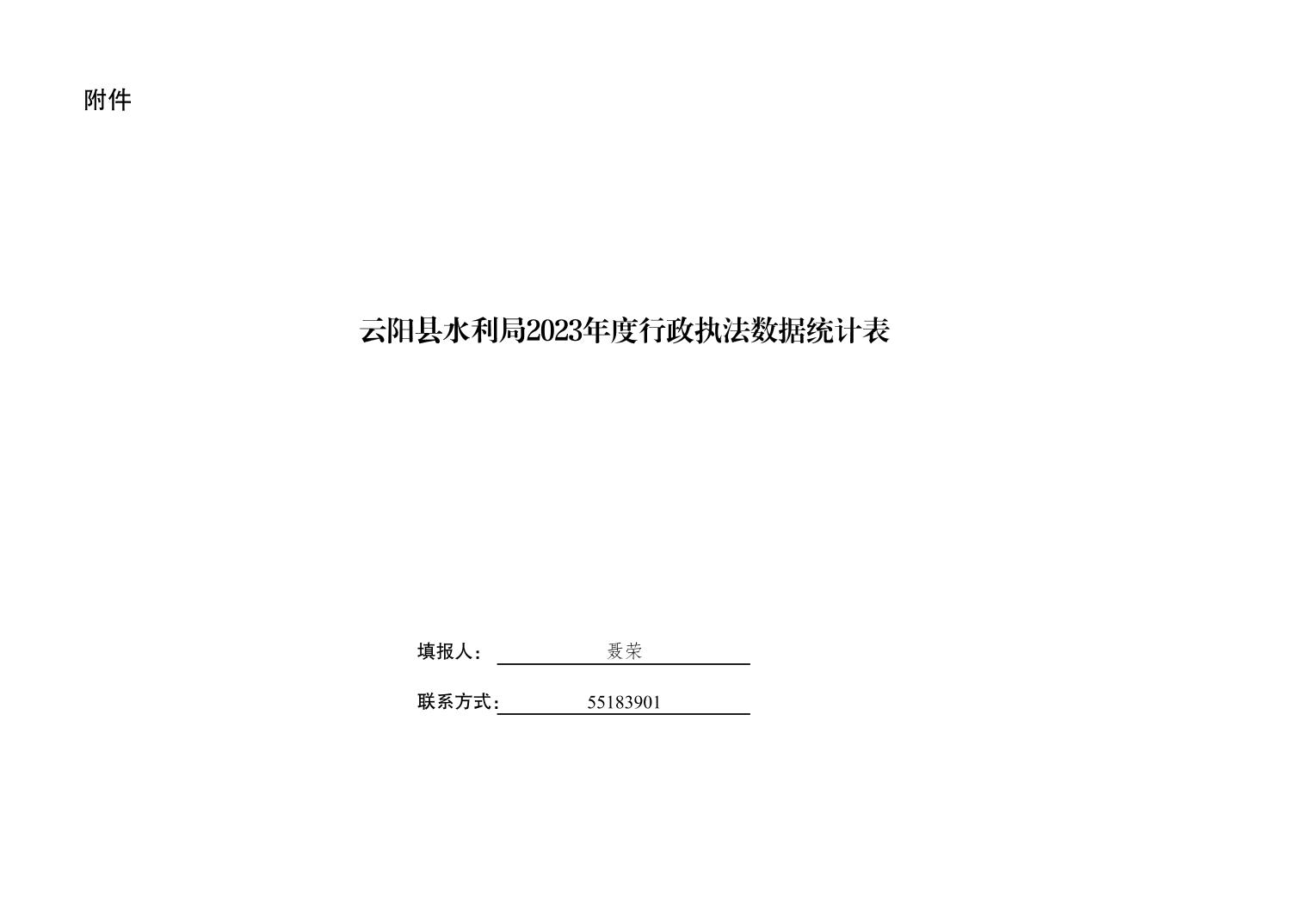 云阳县水利局2023年度行政执法数据统计表