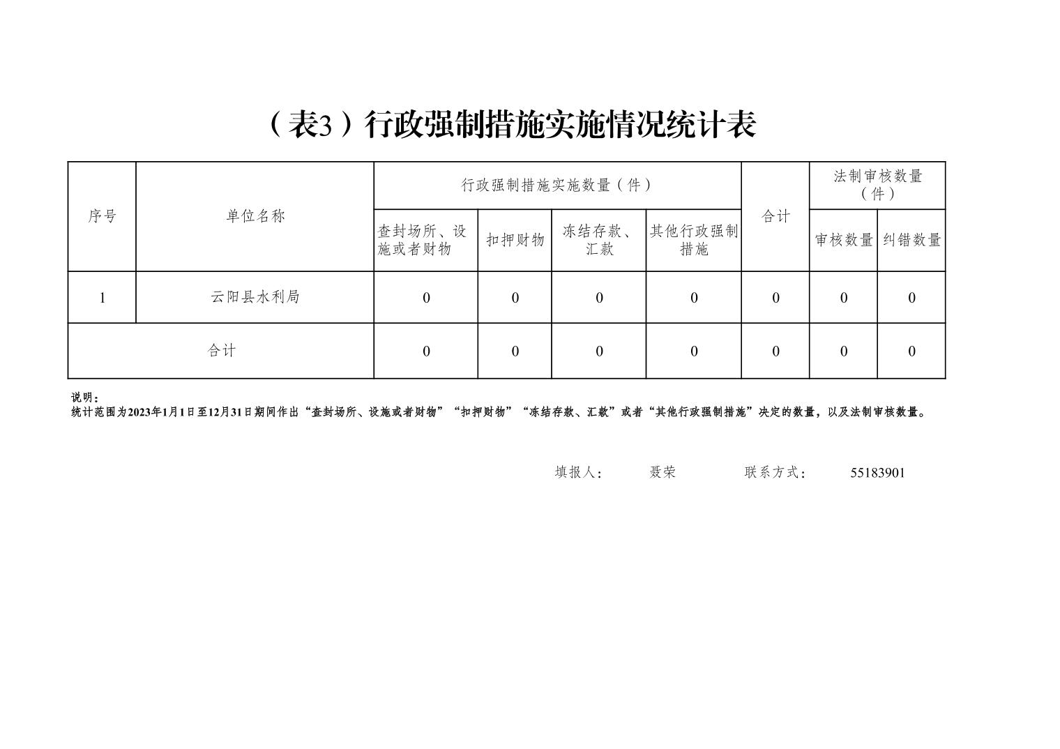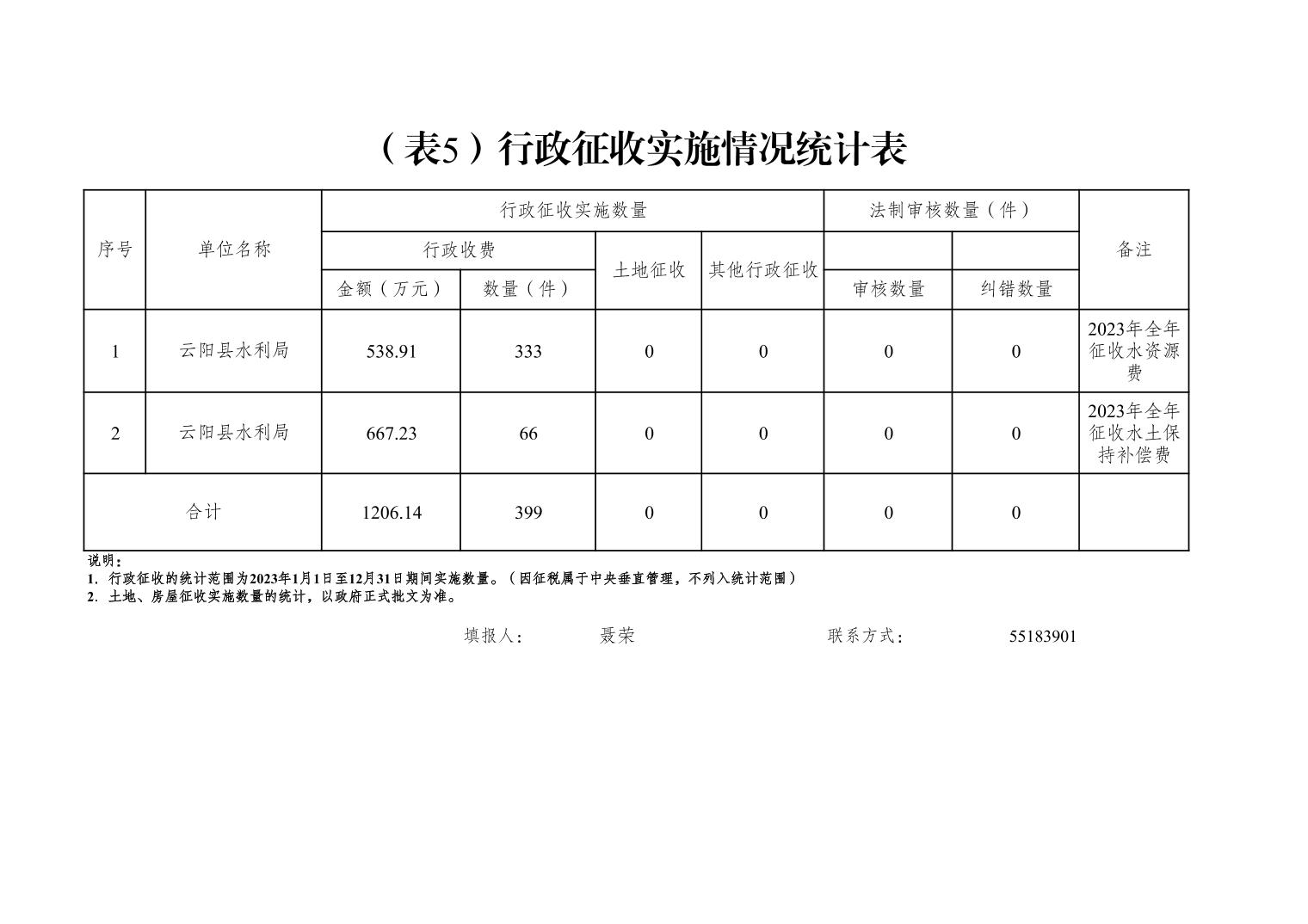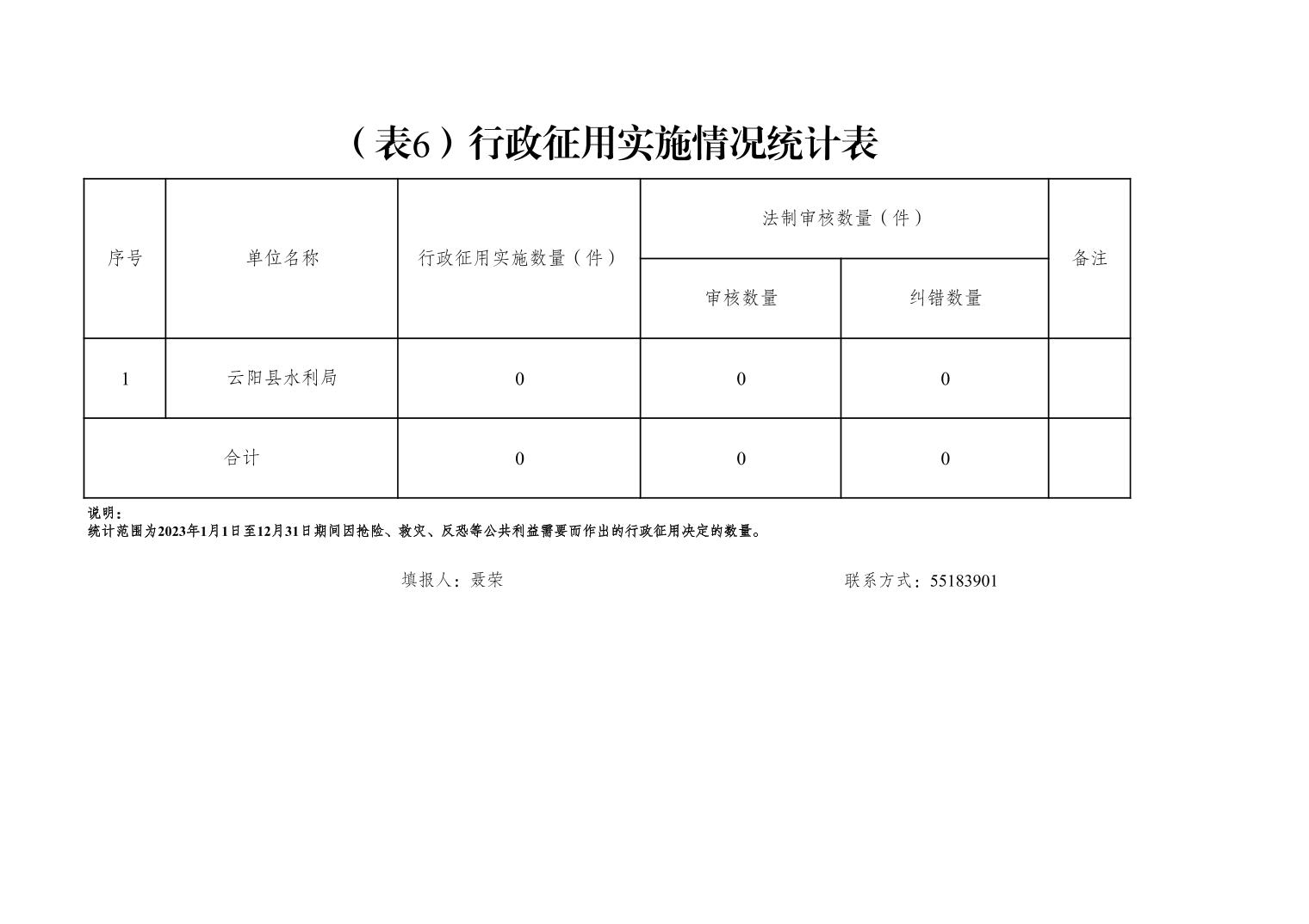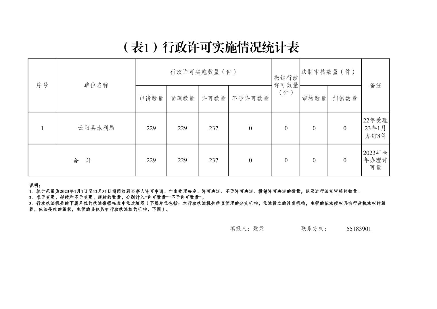 云阳县水利局2023年度行政执法数据统计表