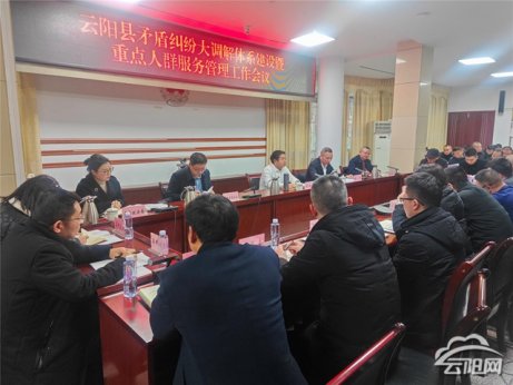 云阳网讯(记者 贺元河)1月22日,我县召开矛盾纠纷大调解体系建设暨重点人群服务管理工作会议,学习习近平总书记关于调解工作的重要指示精神,传达重庆市相关专题会议精神,安排部署贯彻落实工作。县委常委、政法委书记刘桂虎出席会议并讲话,副县长、县公安局局长薛翀主持会议。