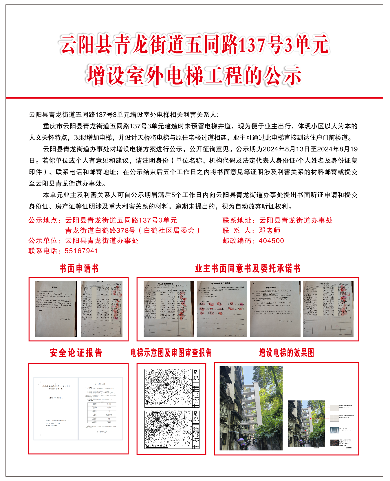 云阳县青龙街道五同路137号3单元增设室外电梯工程的公示