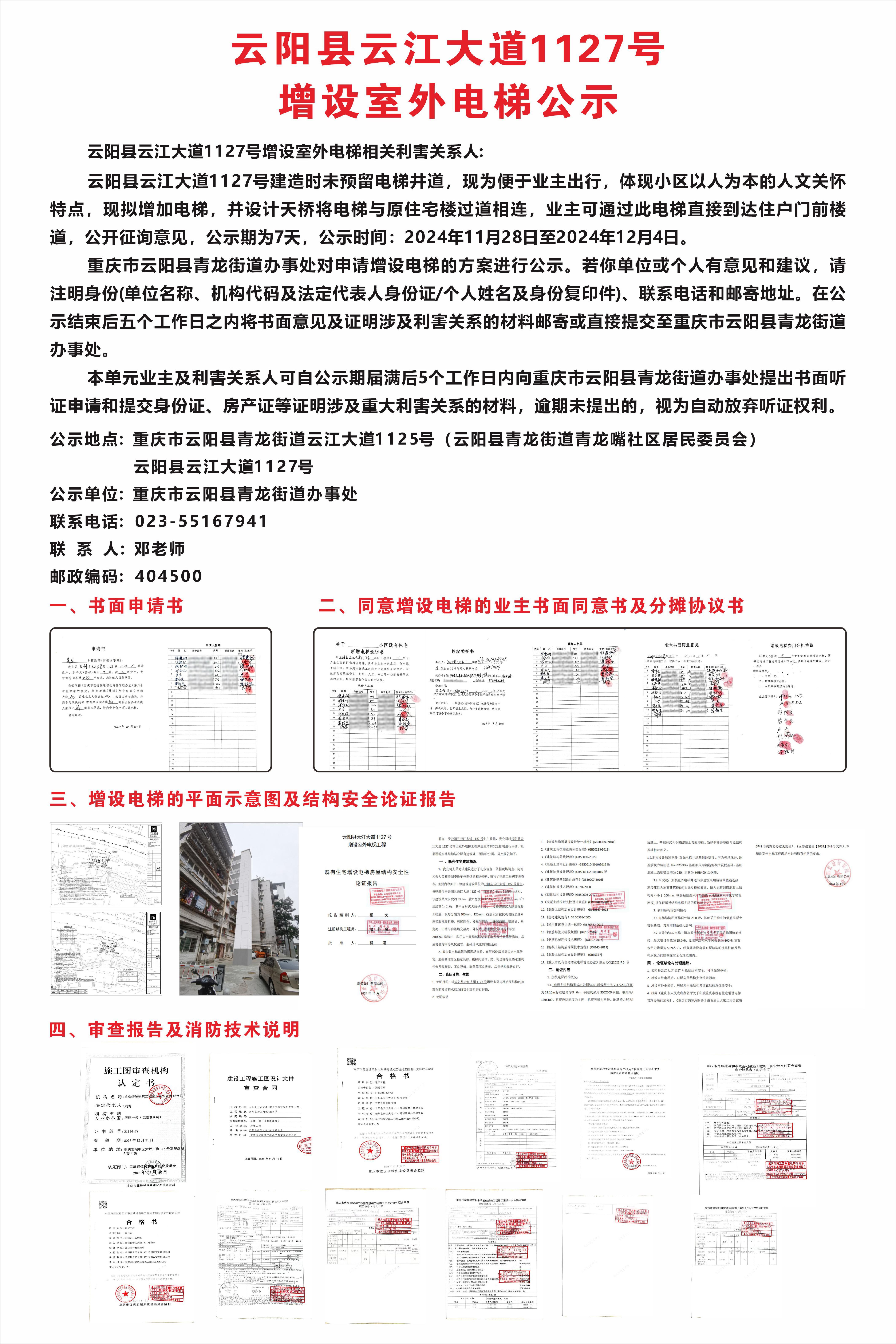 云阳县云江大道1127号增设室外电梯公示