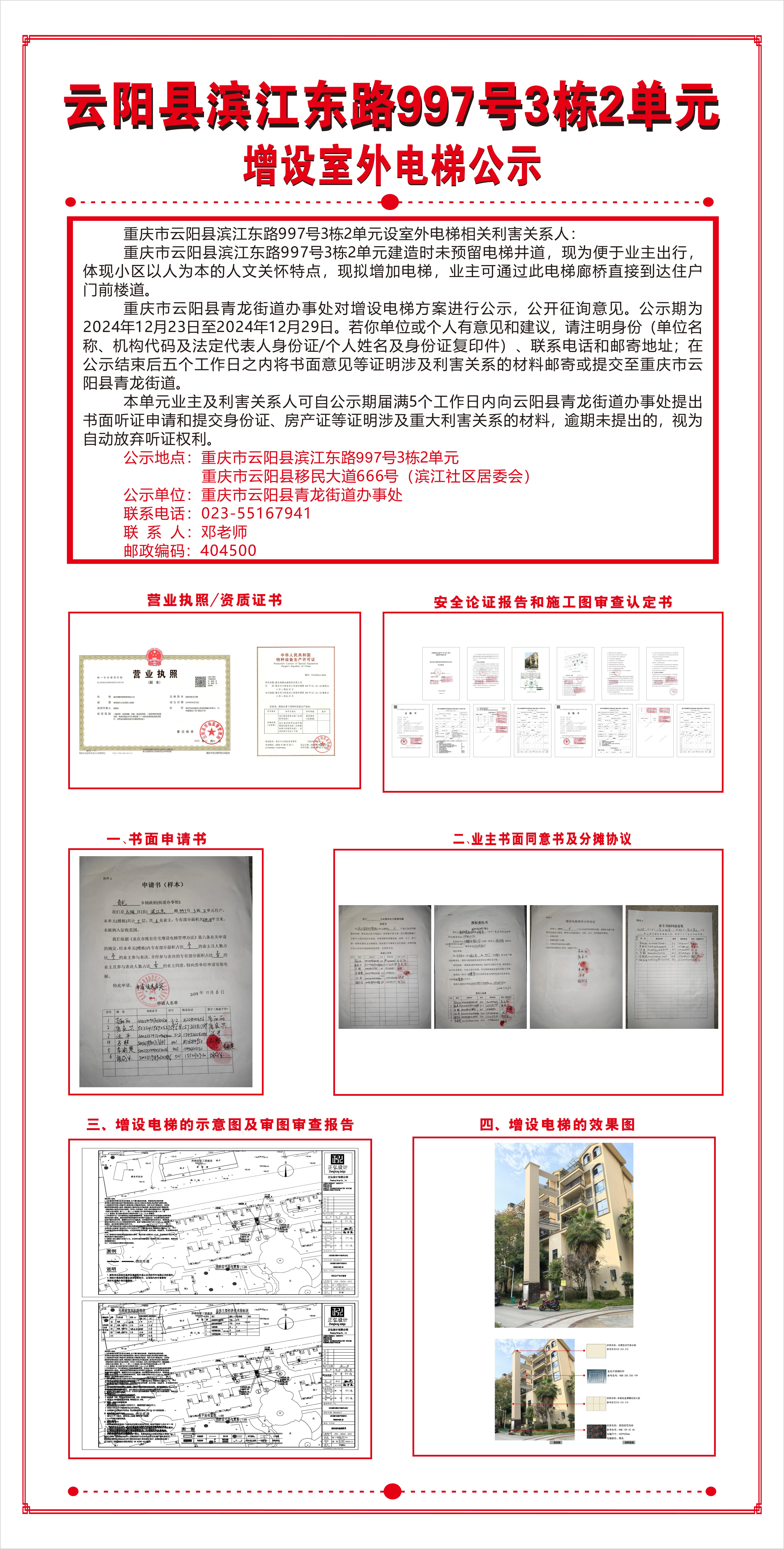 云阳县滨江东路997号3栋2单元增设室外电梯公示