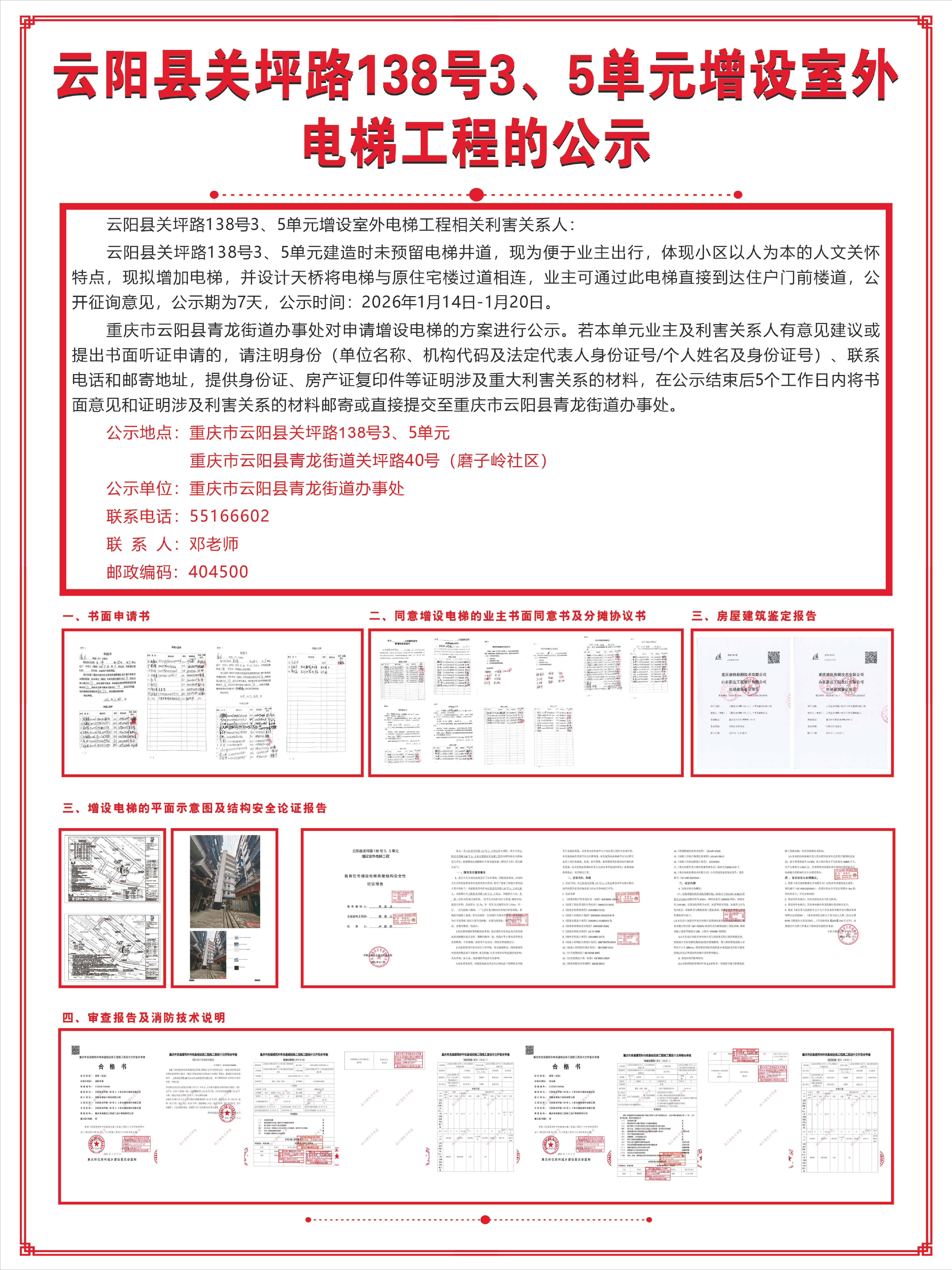 云阳县关坪路138号3、5单元增设室外电梯工程的公示