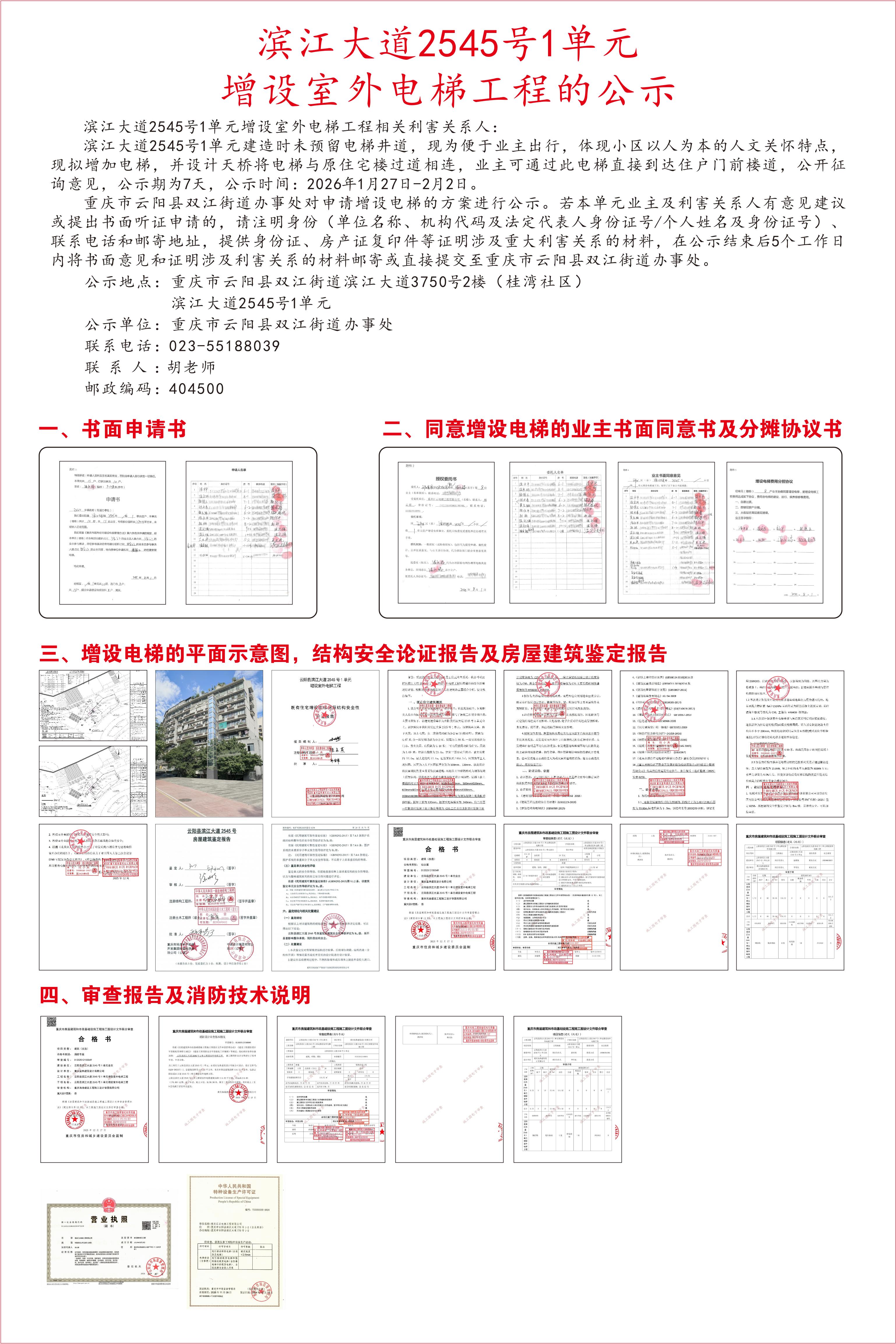 云阳县滨江大道2545号1单元增设室外电梯工程的公示