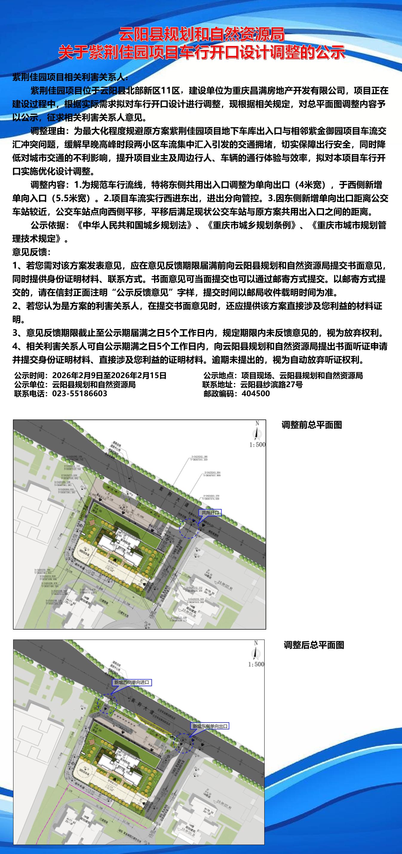 云阳县规划和自然资源局关于紫荆佳园项目车行开口设计调整的公示