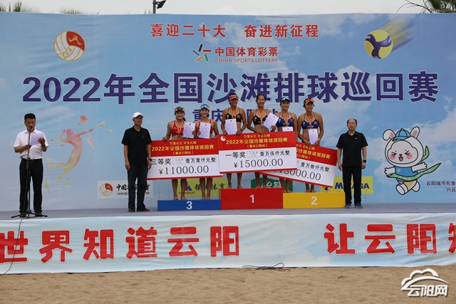 根据最终比赛结果显示,2022年全国沙滩排球巡回赛(重庆云阳站)的男女组前三名分别为:男子组:国家三队王延伟、周朝威成功卫冕冠军,国家一队李焯新、薛涛获得亚军,海南三队陈秀峰、秦成达获得季军;国家二队吕雯、董颉以在本次比赛中成功斩获女子组冠军,国家一队的王婧哲、阿黑旦·木沙江获得亚军,山东省代表队王颖芃、张新晨喜获季军。