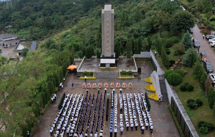 纪念碑前,军烈属、老战士、退役军人、少先队员、驻云部队官兵、公安民警、消防救援、民主党派、工商联和无党派人士等社会各界干部群众代表手持鲜花,列队肃立。