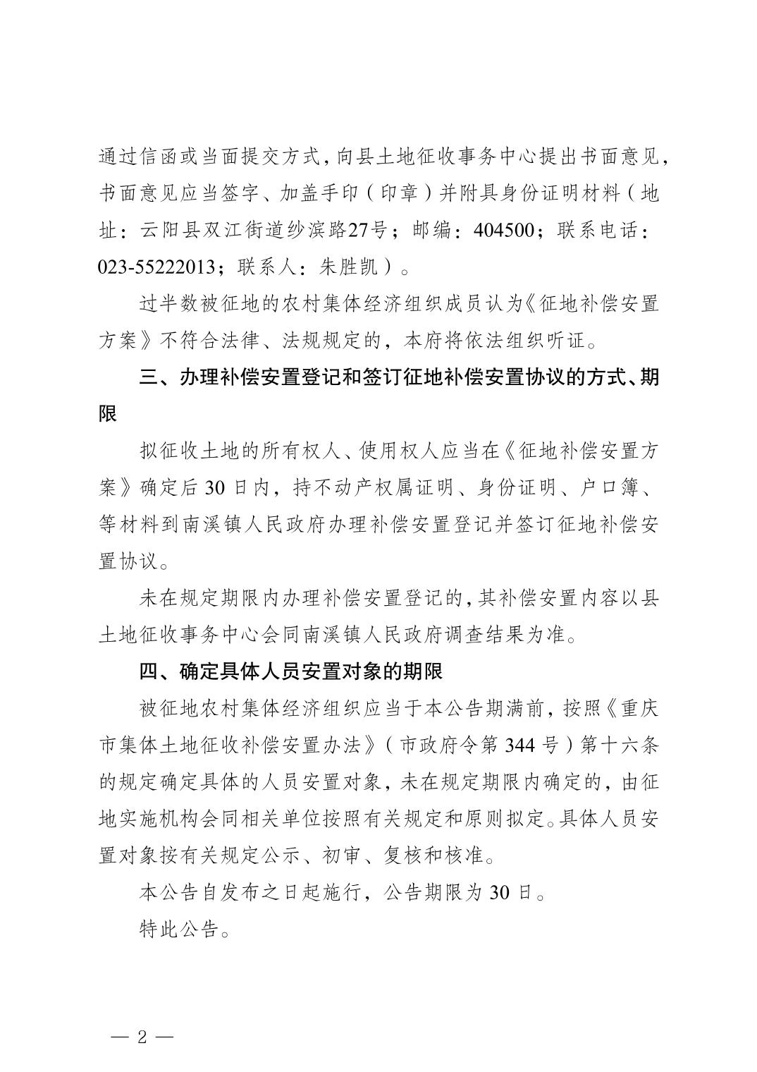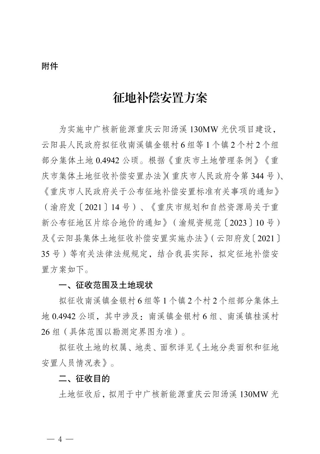 云阳县人民政府关于征地补偿安置方案的公告(云阳府征地方案公告〔2026〕1号)