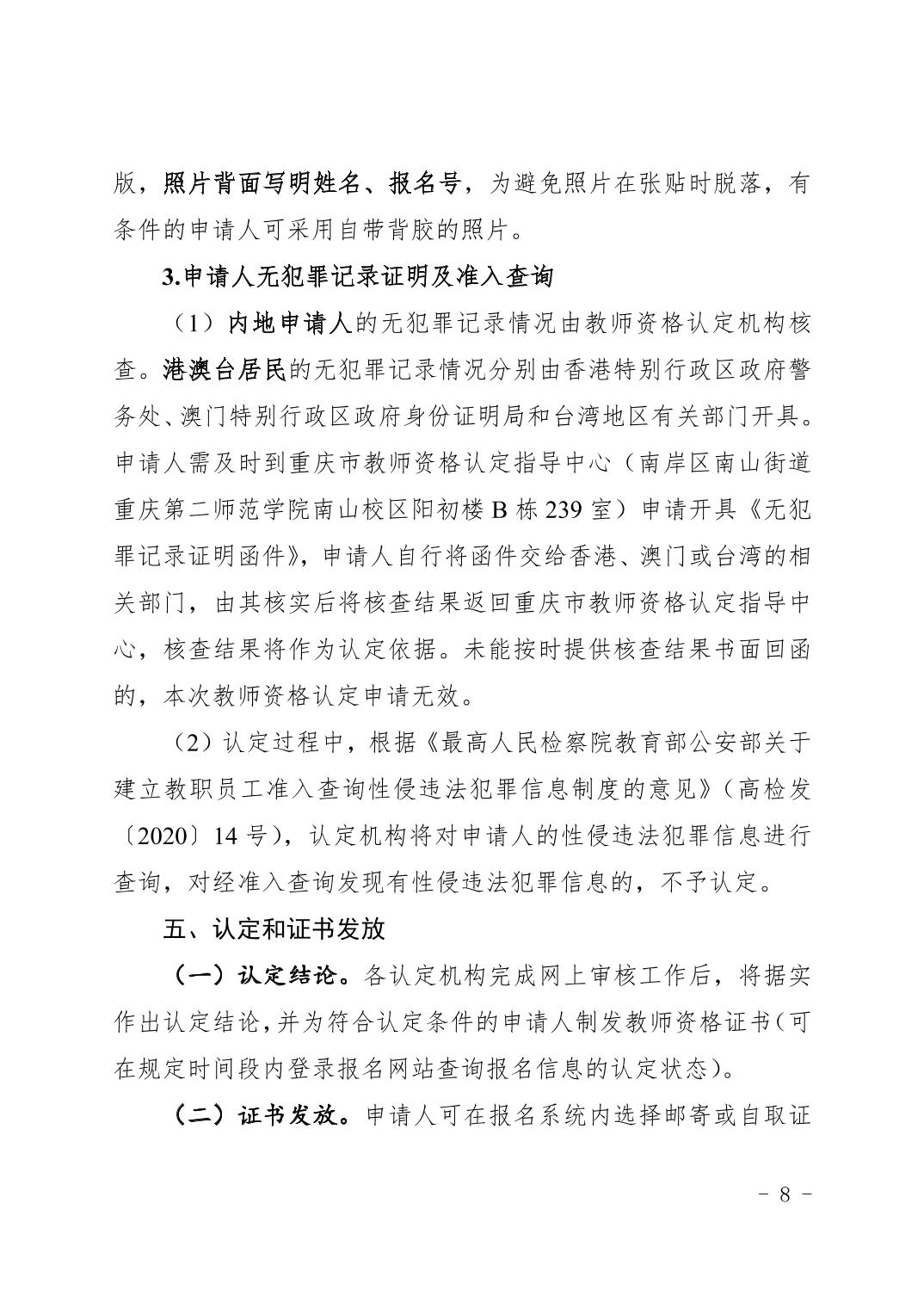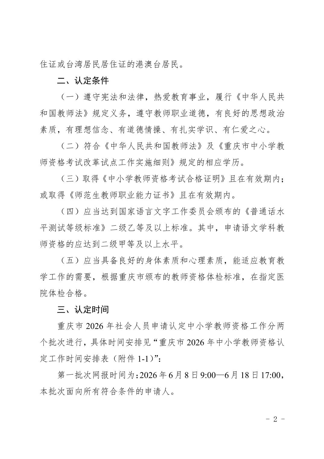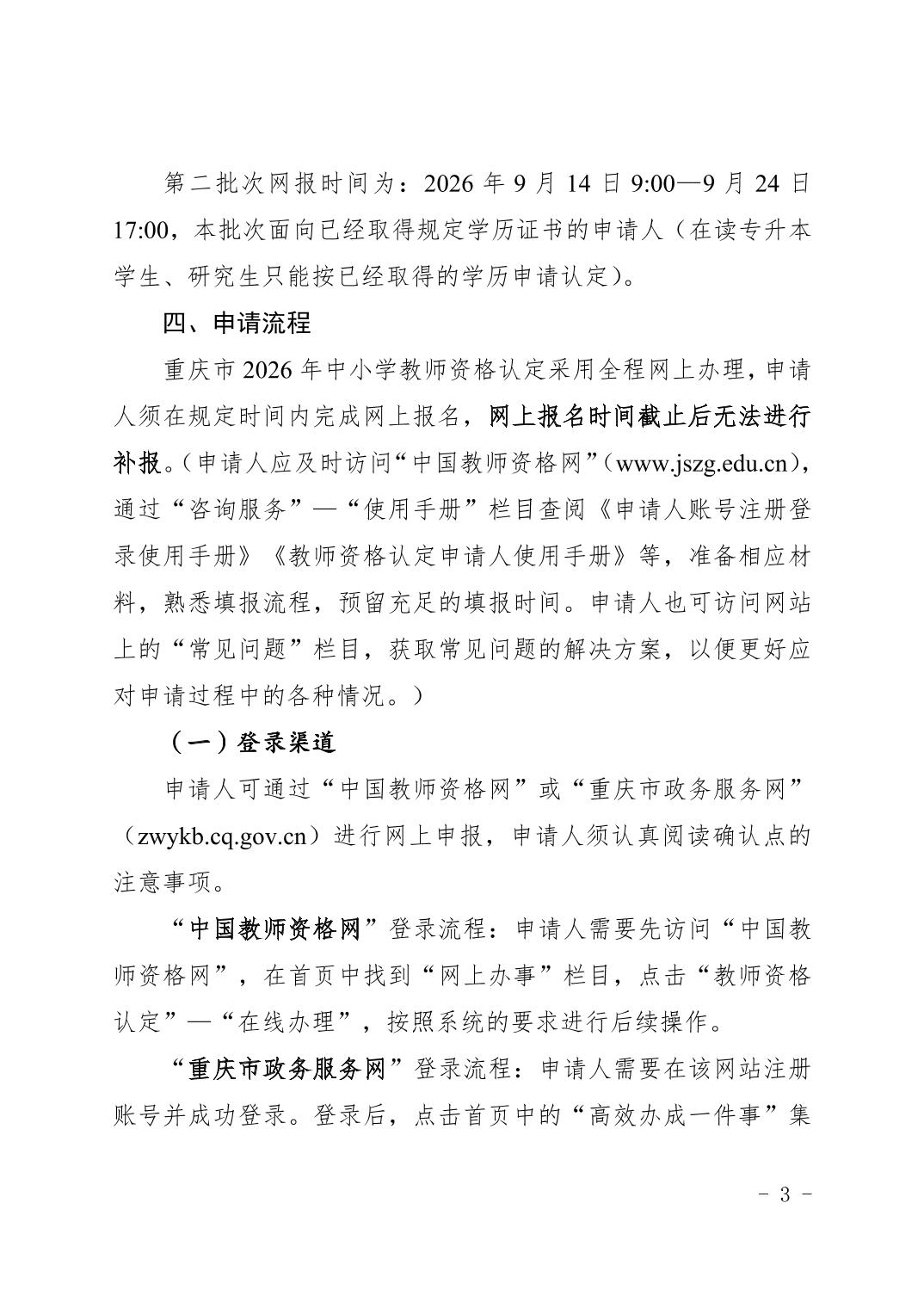 重庆市2025年中小学教师资格认定公告