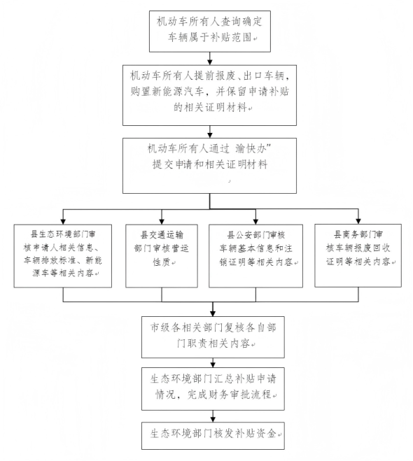 县生态环境局牵头,负责综合协调全县国四、国三排放标准非营运柴油货车和国一及以下排放标准非道路移动机械提前淘汰更新补贴工作;指导辖区内机动车回收拆解企业对每台报废拆解机械信息进行技术核实,核查主要零部件信息与整机及发动机铭牌信息、编码登记信息一致性,避免组装机械;负责审核拆解企业出具的《报废非道路移动机械回收证明》;负责每月给市生态环境局报送补贴资金汇总表(见附件4);按部门职责负责相应的申请材料审核工作。